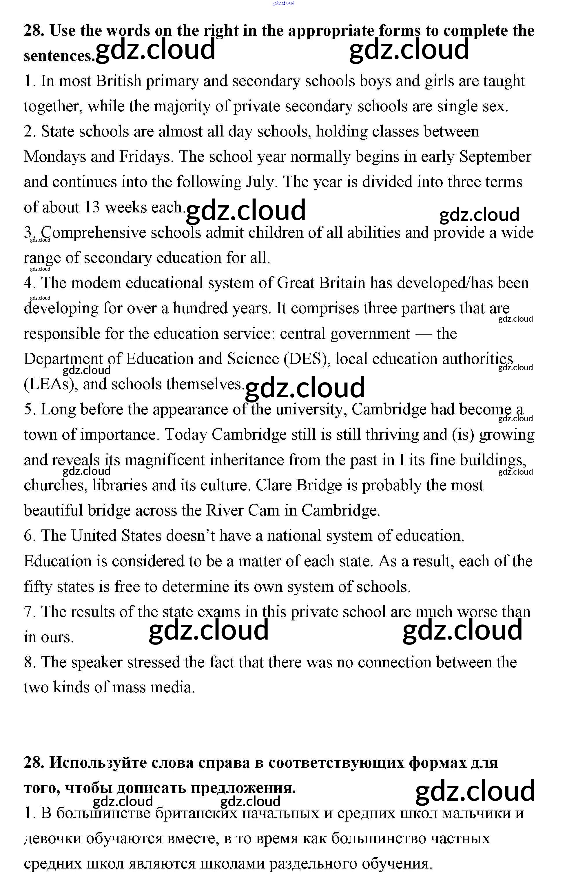 Ответ на задание 28 Рабочая тетрадь Английский язык за 11 (одиннадцатый) класс Афанасьева, Михеева, Баранова Rainbow Базовый уровень 2016