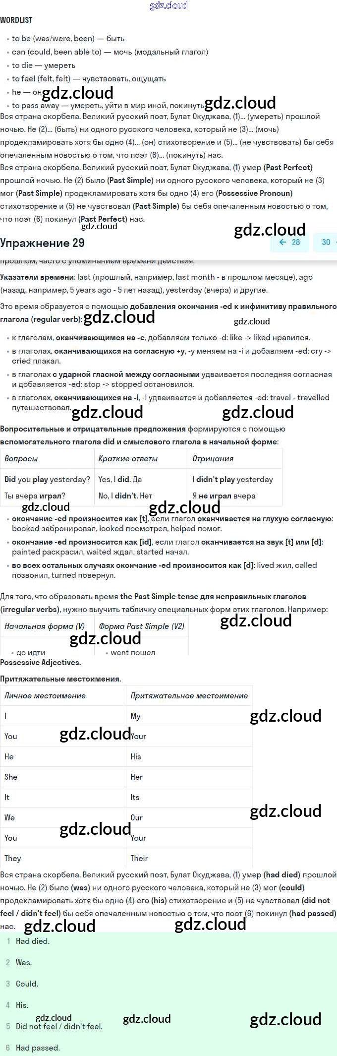 Ответ на задание 29 Рабочая тетрадь Английский язык за 11 (одиннадцатый) класс Афанасьева, Михеева, Баранова Rainbow Базовый уровень 2016