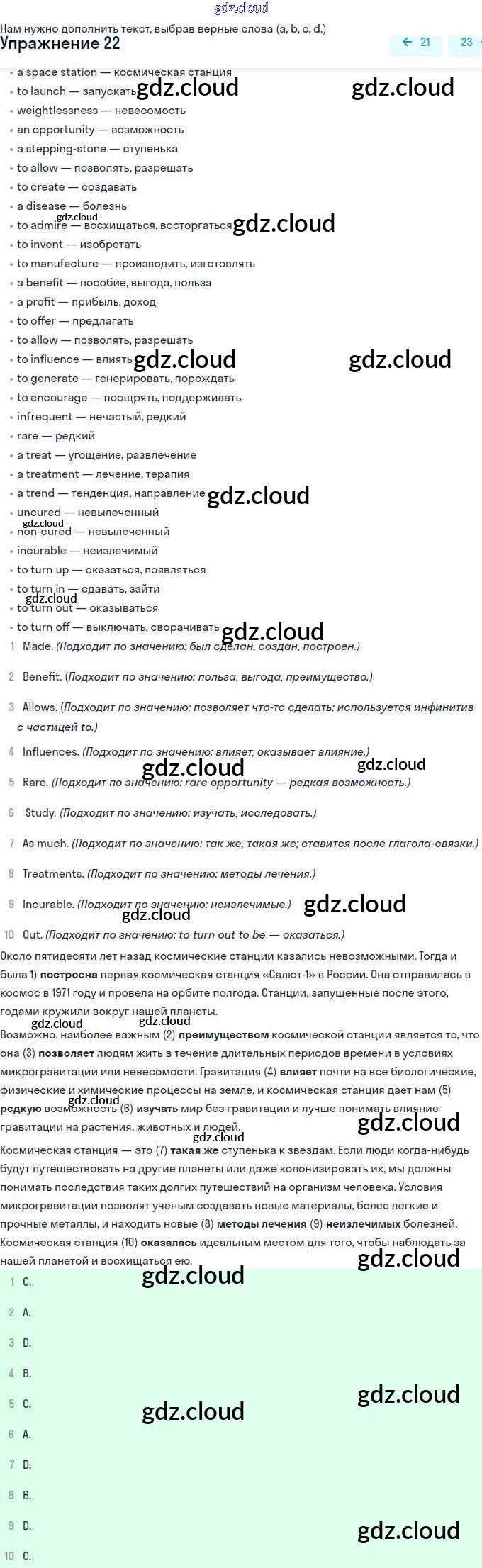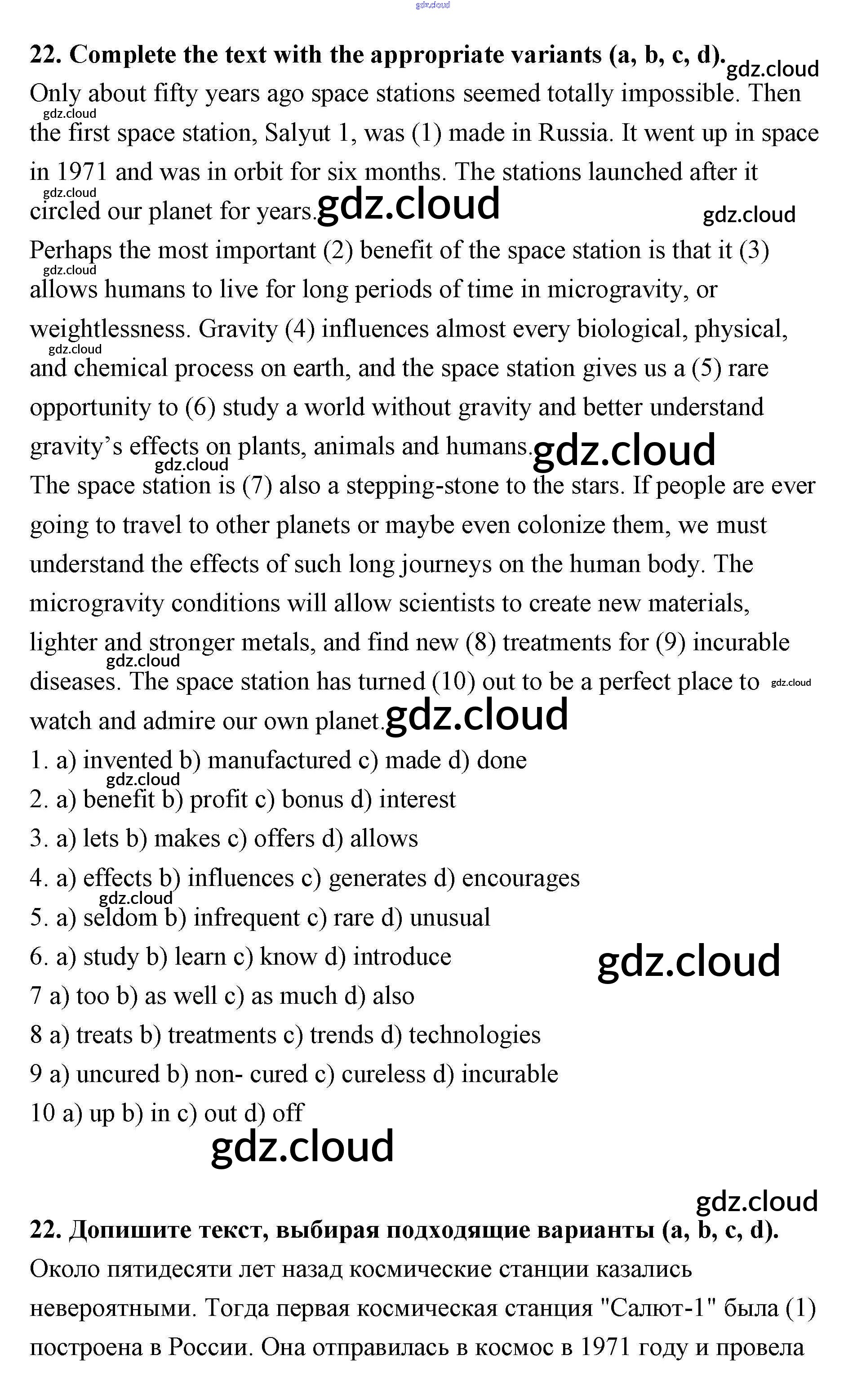 Ответ на задание 22 Рабочая тетрадь Английский язык за 11 (одиннадцатый) класс Афанасьева, Михеева, Баранова Rainbow Базовый уровень 2016