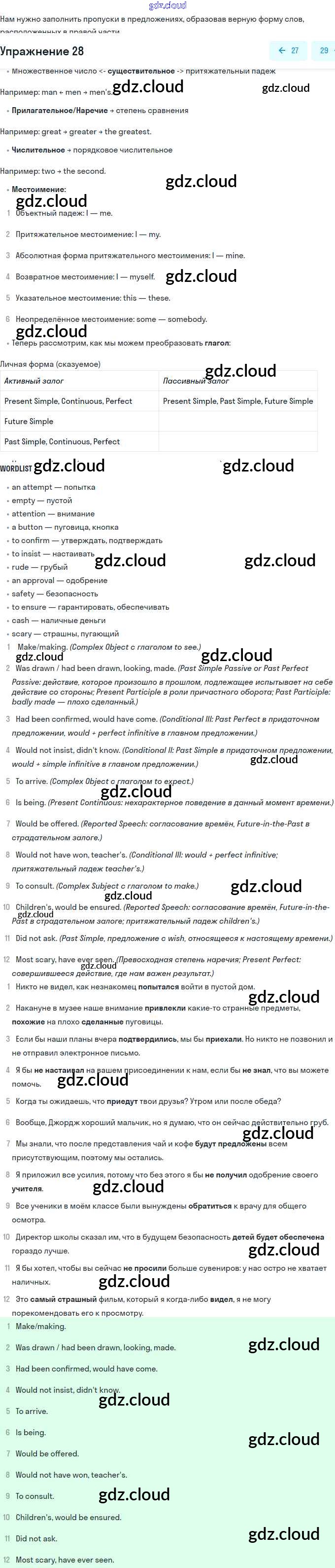 Ответ на задание 28 Рабочая тетрадь Английский язык за 11 (одиннадцатый) класс Афанасьева, Михеева, Баранова Rainbow Базовый уровень 2016