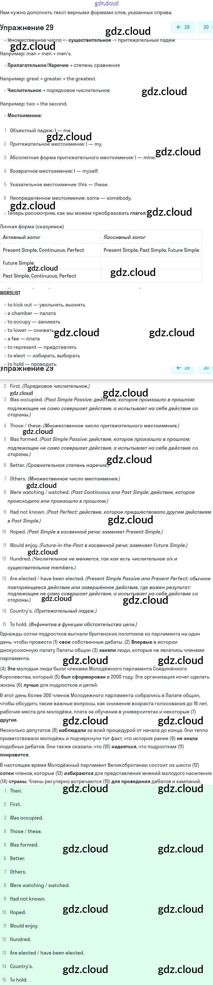 Ответ на задание 29 Рабочая тетрадь Английский язык за 11 (одиннадцатый) класс Афанасьева, Михеева, Баранова Rainbow Базовый уровень 2016