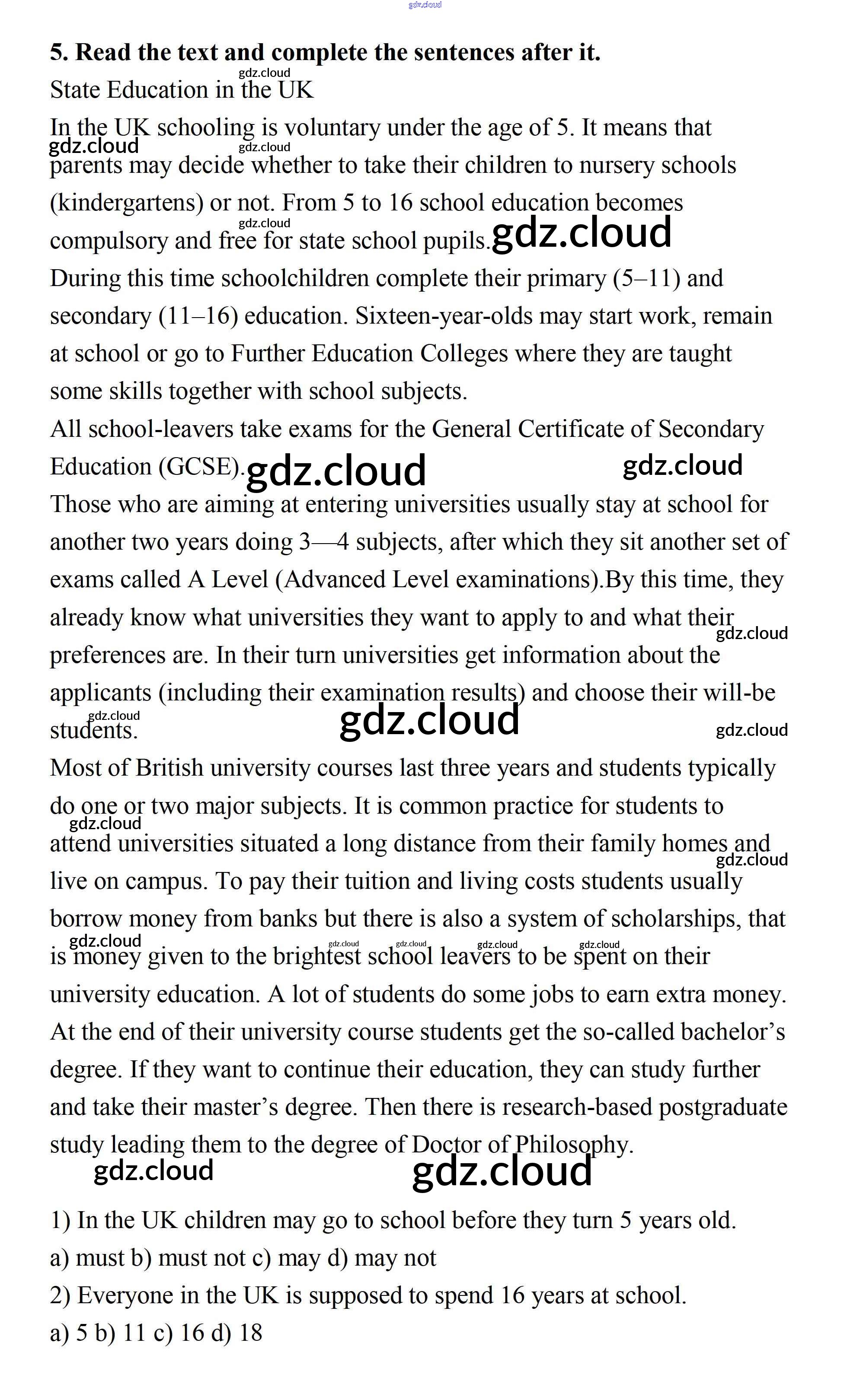 Ответ на задание 5 Учебник Английский язык за 11 (одиннадцатый) класс Афанасьева, Михеева, Баранова Rainbow Базовый уровень 2017, 2021