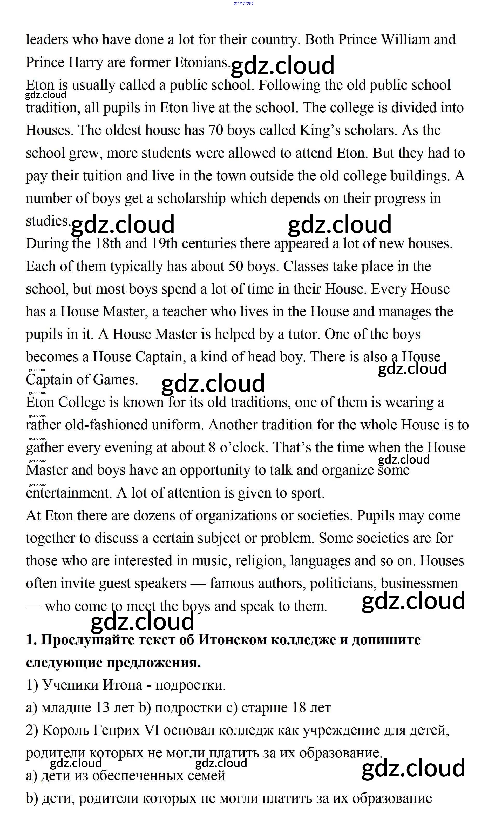 Ответ на задание 1 Учебник Английский язык за 11 (одиннадцатый) класс Афанасьева, Михеева, Баранова Rainbow Базовый уровень 2017, 2021
