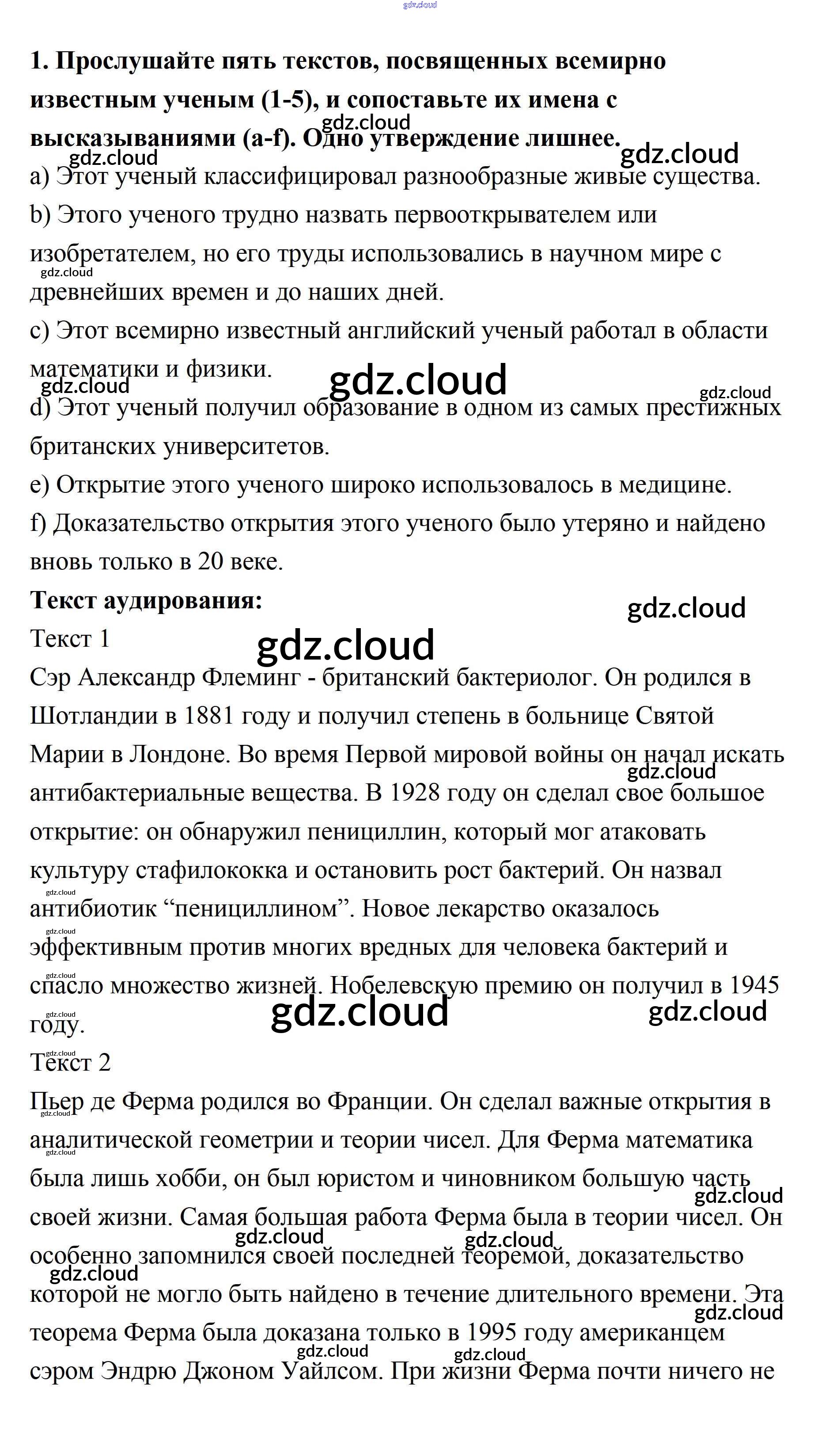 Ответ на задание 1 Учебник Английский язык за 11 (одиннадцатый) класс Афанасьева, Михеева, Баранова Rainbow Базовый уровень 2017, 2021