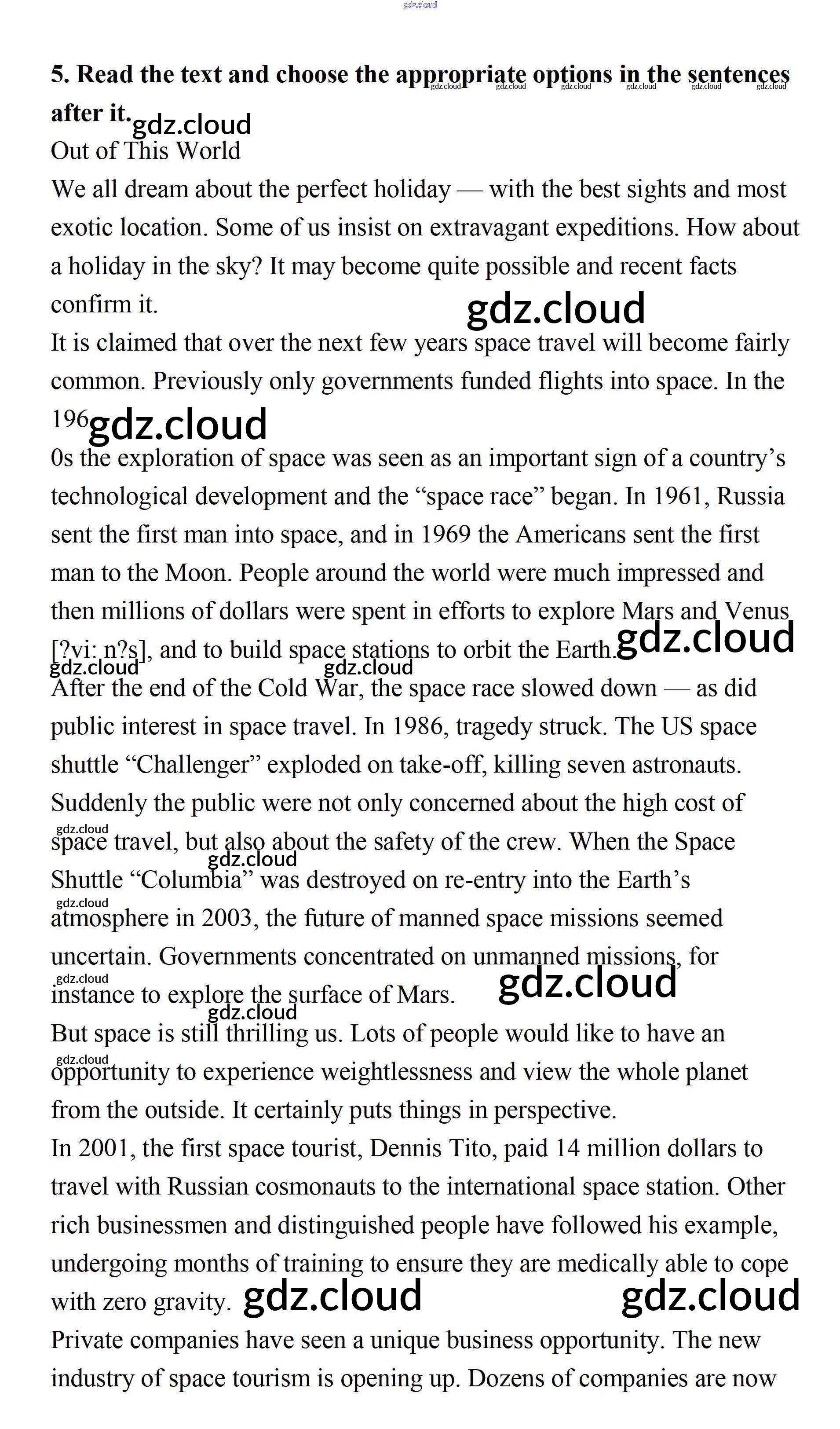 Ответ на задание 5 Учебник Английский язык за 11 (одиннадцатый) класс Афанасьева, Михеева, Баранова Rainbow Базовый уровень 2017, 2021