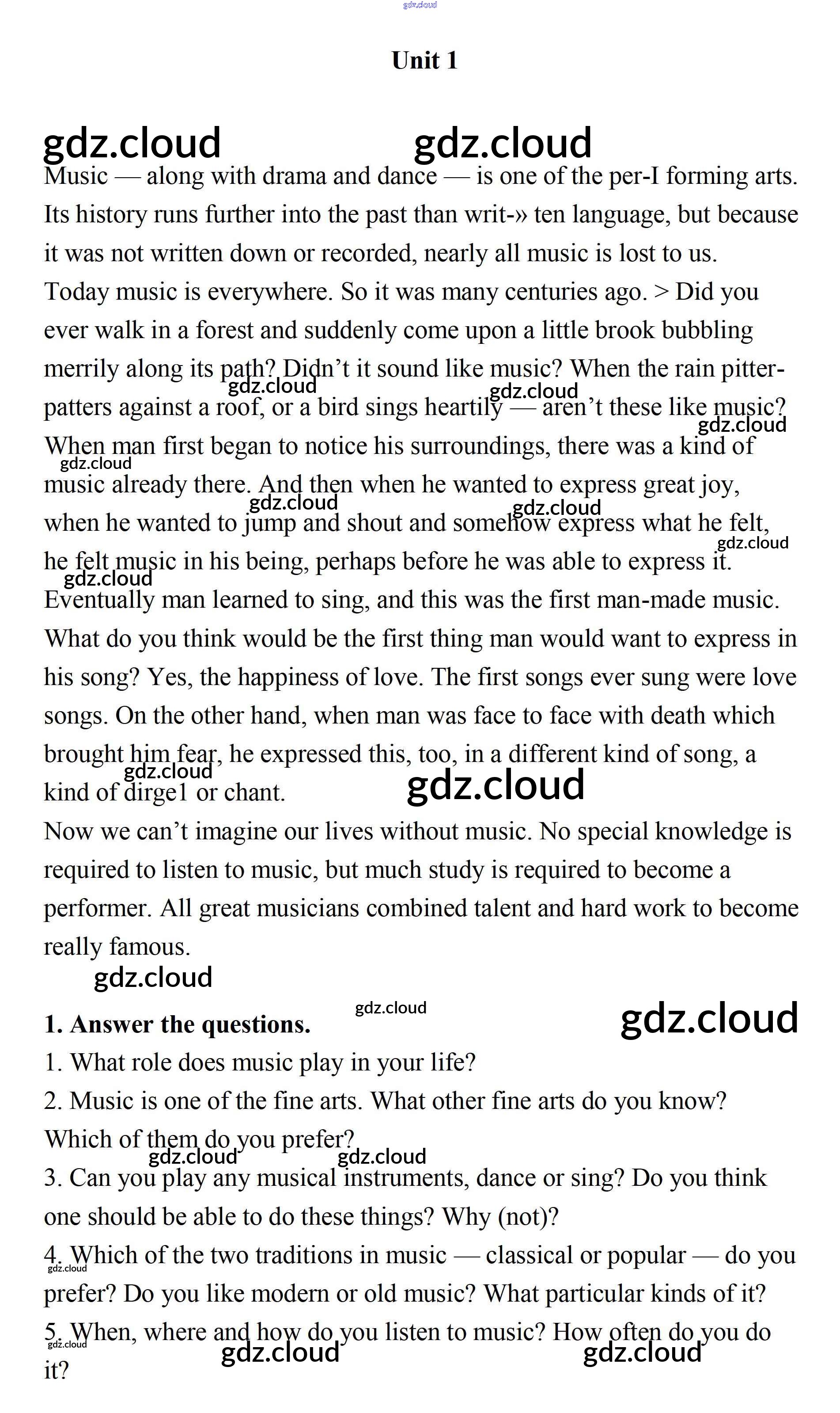 Ответы. Unit 1. Sounds of Music по Английскому языку 11 класс Учебник Афанасьева Углубленный уровень Просвещение