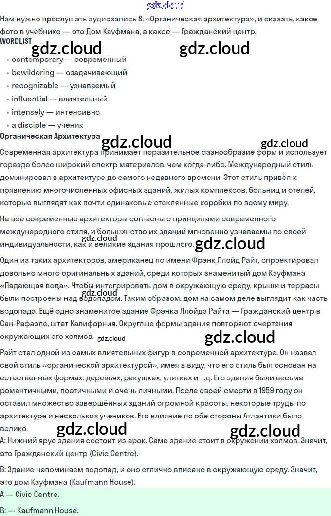 Ответы. Unit 2. Town and Its Architecture по Английскому языку 11 класс Учебник Афанасьева Углубленный уровень Просвещение