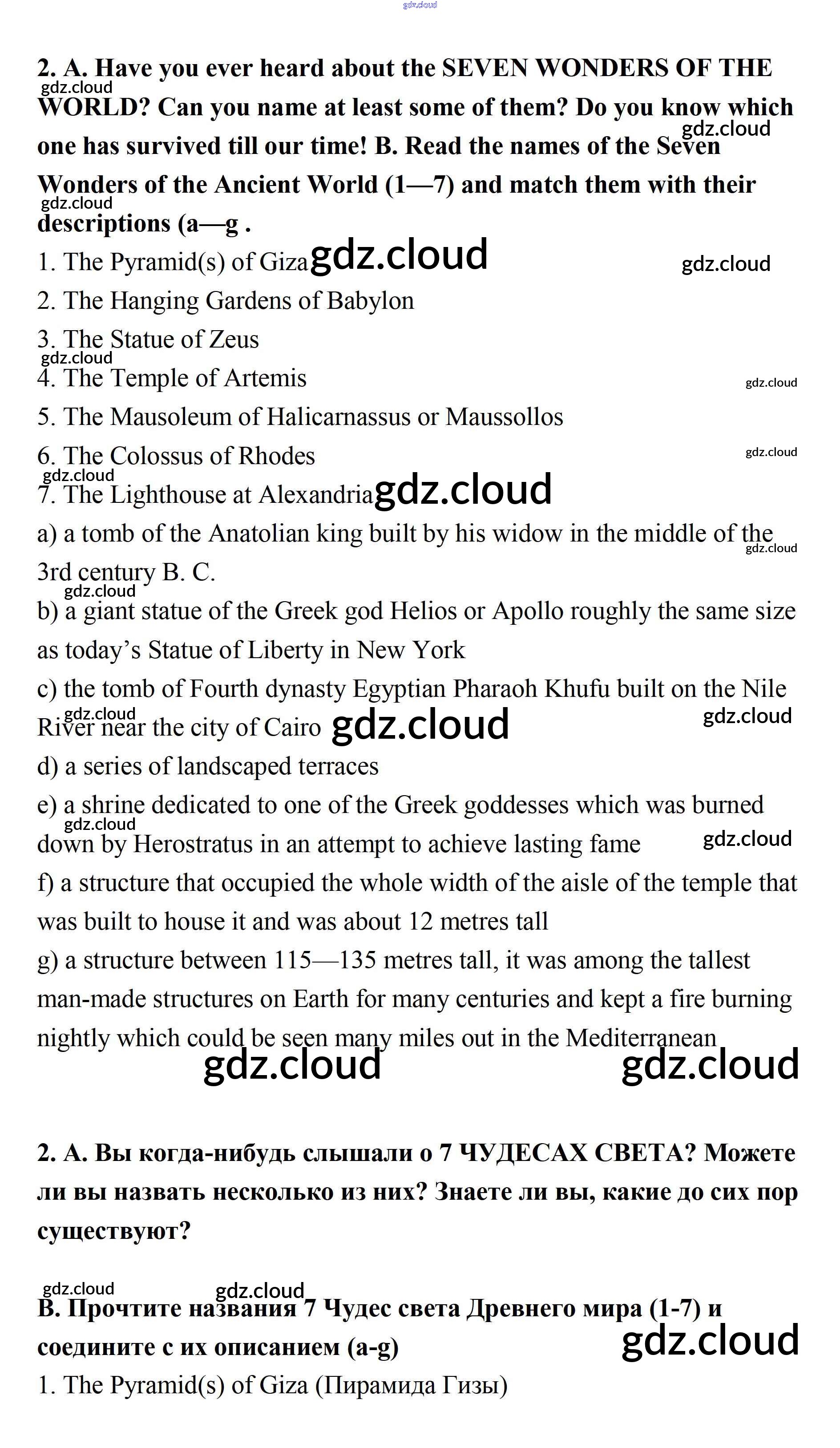 Ответы. Unit 3. Wonders of the World по Английскому языку 11 класс Учебник Афанасьева Углубленный уровень Просвещение