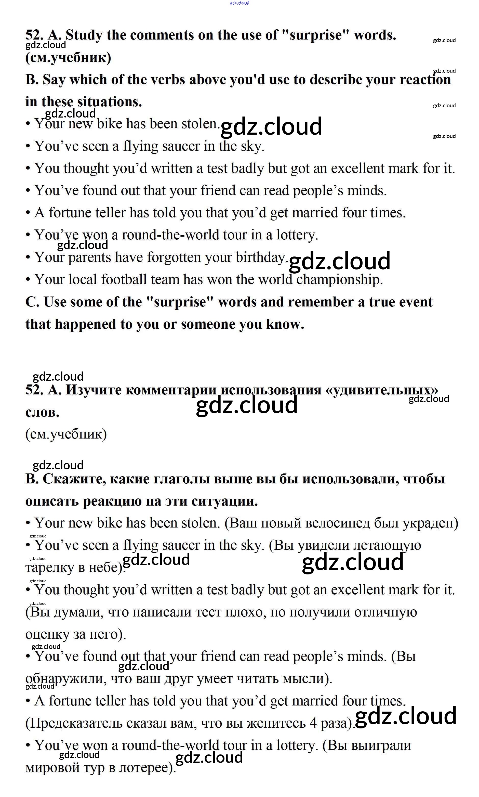 Ответ на задание 52 Учебник Английский язык за 11 (одиннадцатый) класс Афанасьева, Михеева Углубленный уровень 2015