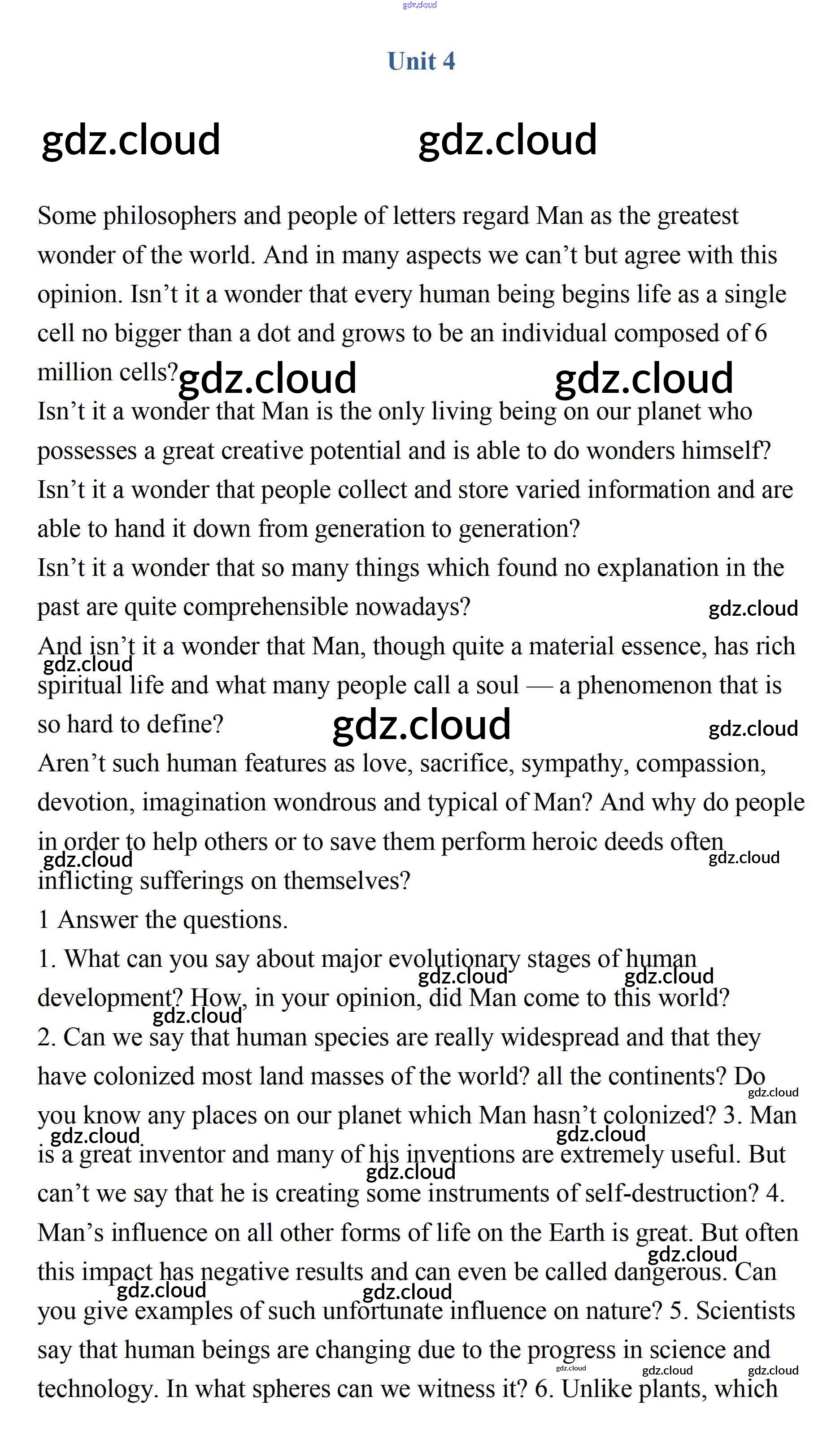 Ответы. Unit 4. Man as the Greatest Wonder of the World по Английскому языку 11 класс Учебник Афанасьева Углубленный уровень Просвещение