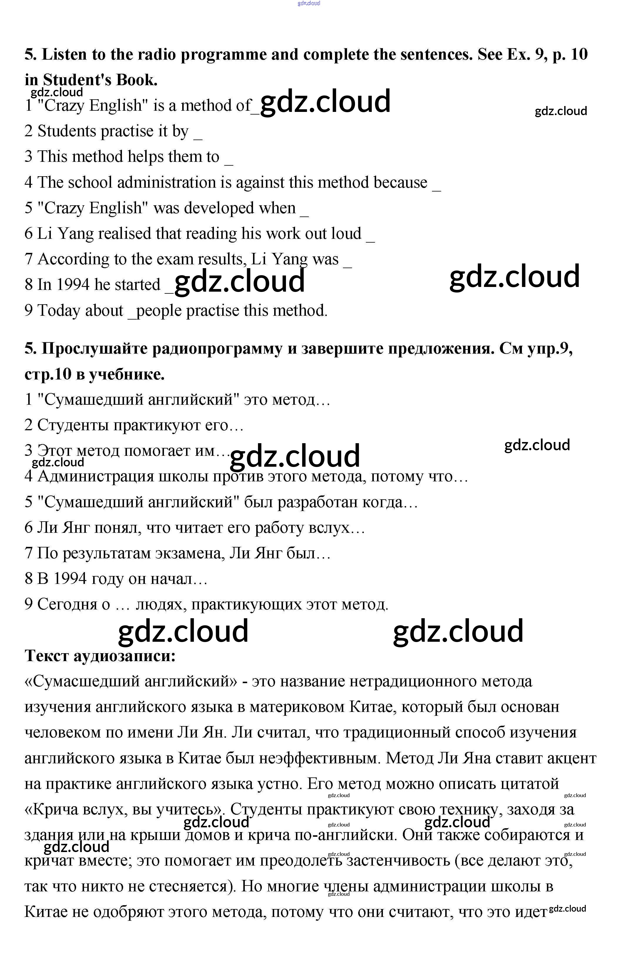 Ответ на задание 5 Рабочая тетрадь Английский язык за 11 (одиннадцатый) класс Биболетова, Трубанева Enjoy English 2013