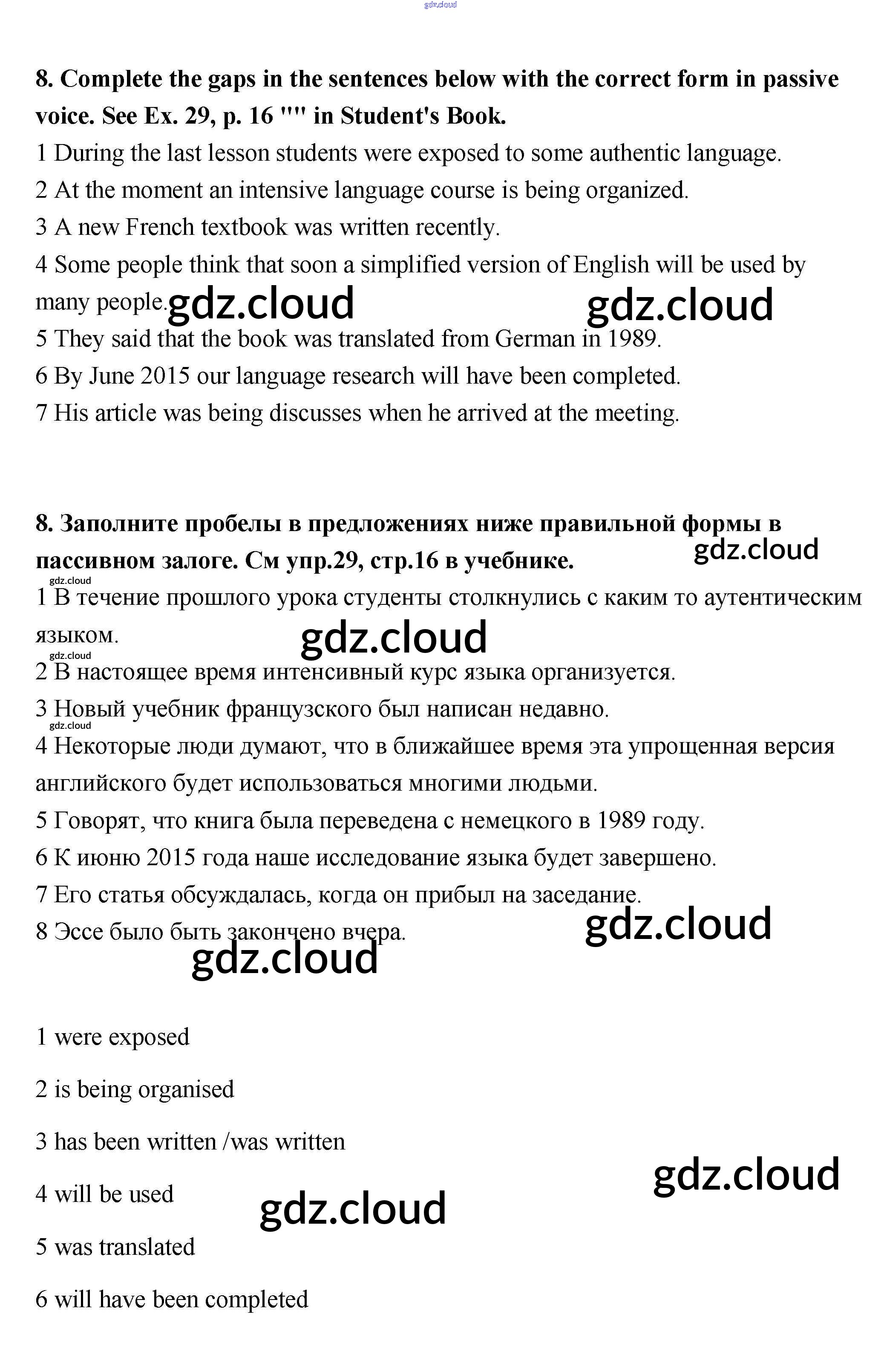 Ответ на задание 8 Рабочая тетрадь Английский язык за 11 (одиннадцатый) класс Биболетова, Трубанева Enjoy English 2013