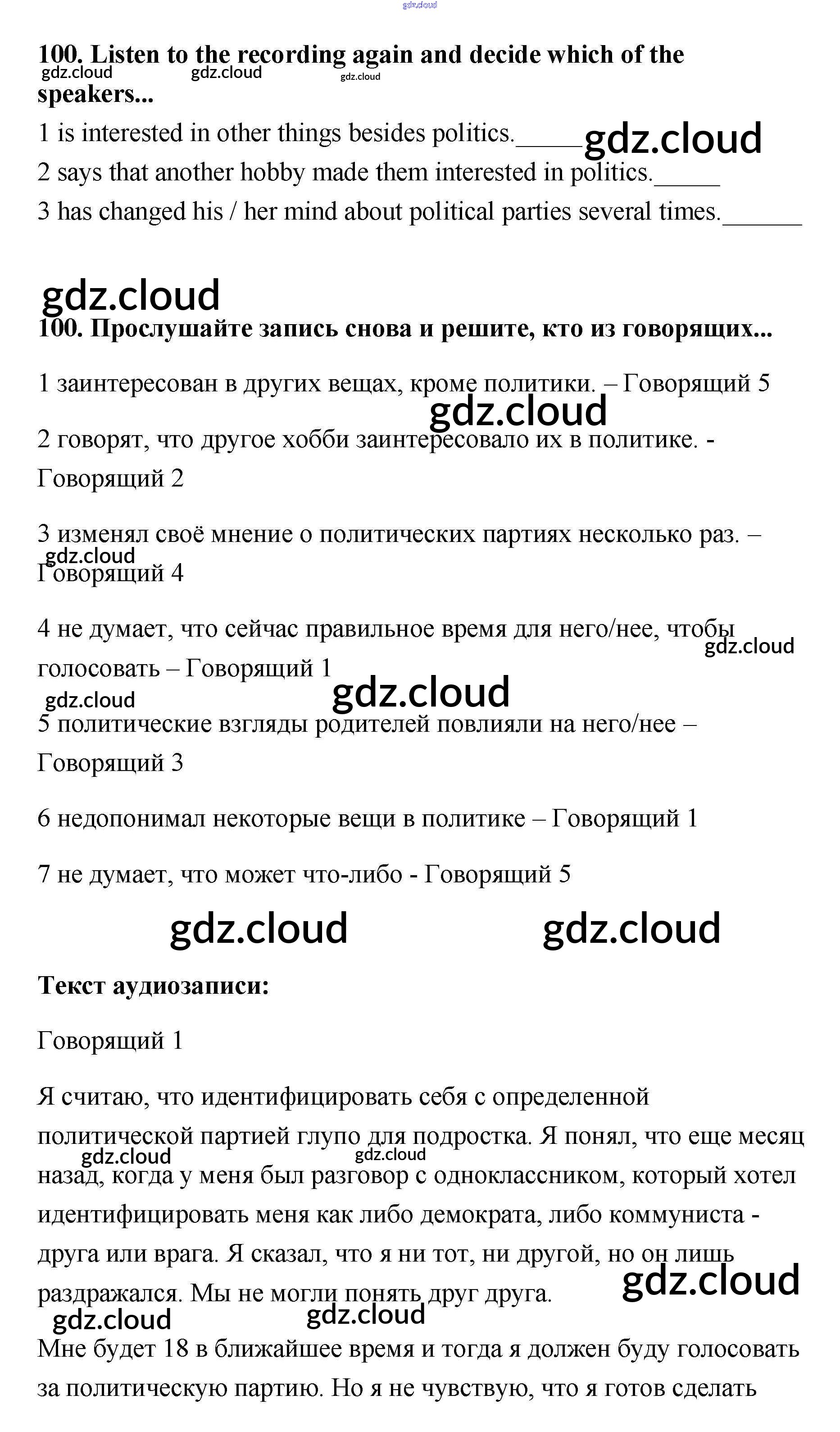 Ответ на задание 100 Учебник Английский язык за 11 (одиннадцатый) класс Биболетова, Трубанева Enjoy English 2015 ФГОС онлайн и без номера телефона.
