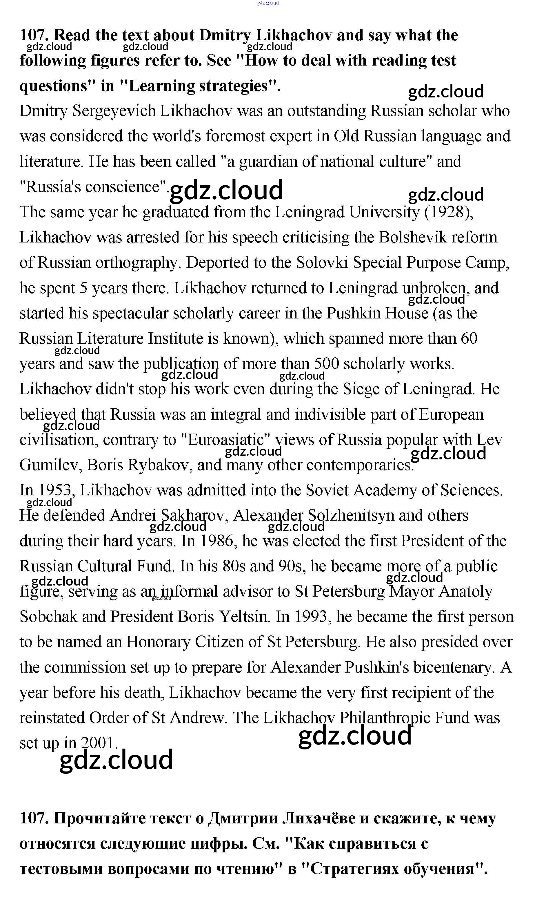 Ответ на задание 107 Учебник Английский язык за 11 (одиннадцатый) класс Биболетова, Трубанева Enjoy English 2015 ФГОС онлайн и без номера телефона.