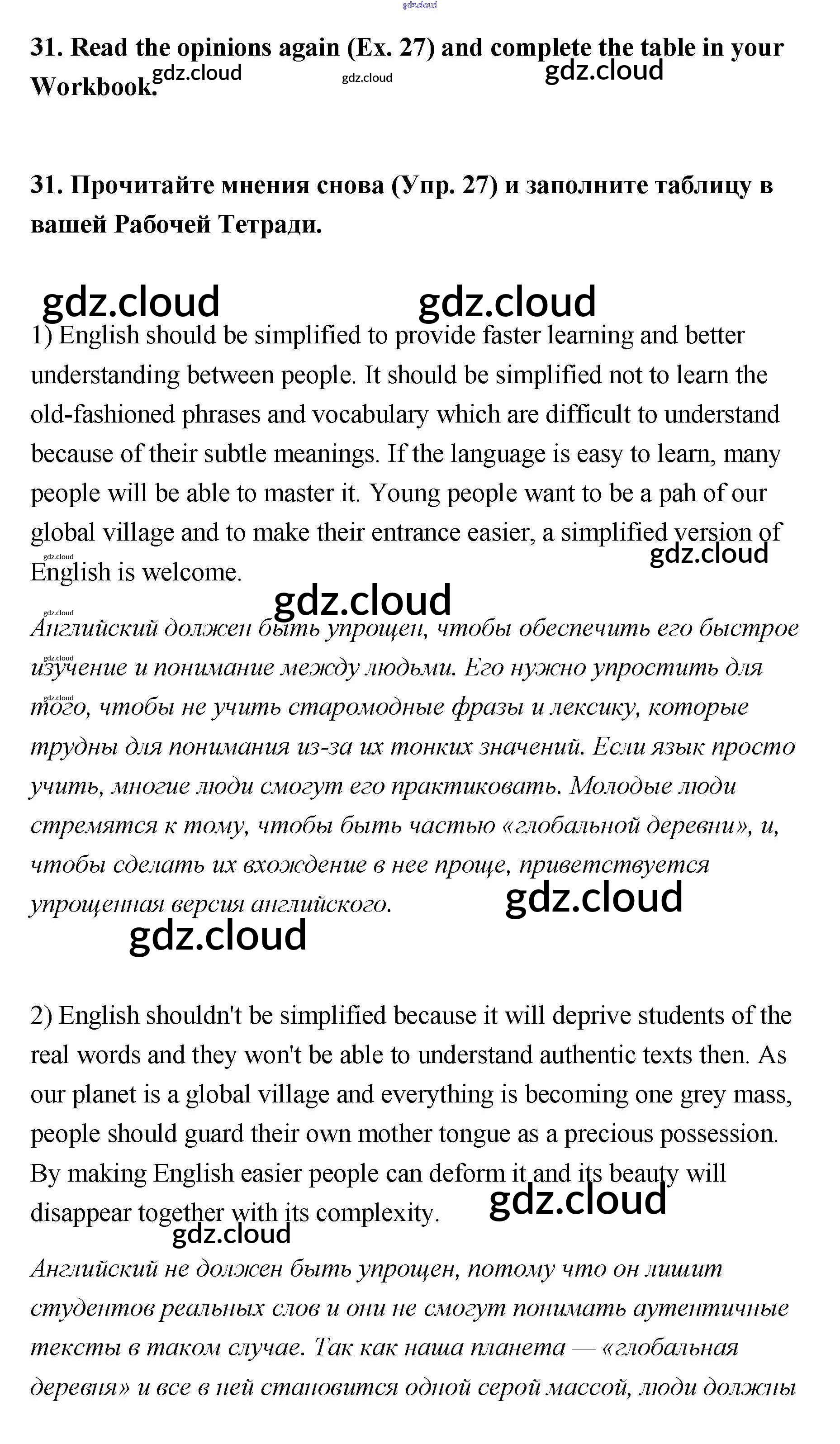 Ответ на задание 31 Учебник Английский язык за 11 (одиннадцатый) класс Биболетова, Трубанева Enjoy English 2015 ФГОС онлайн и без номера телефона.