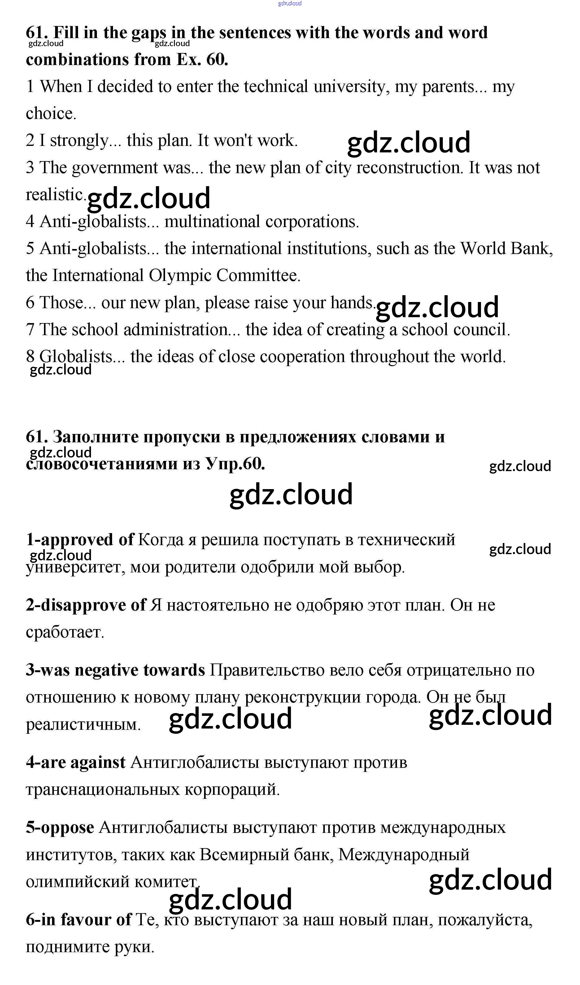 Ответ на задание 61 Учебник Английский язык за 11 (одиннадцатый) класс Биболетова, Трубанева Enjoy English 2015 ФГОС онлайн и без номера телефона.
