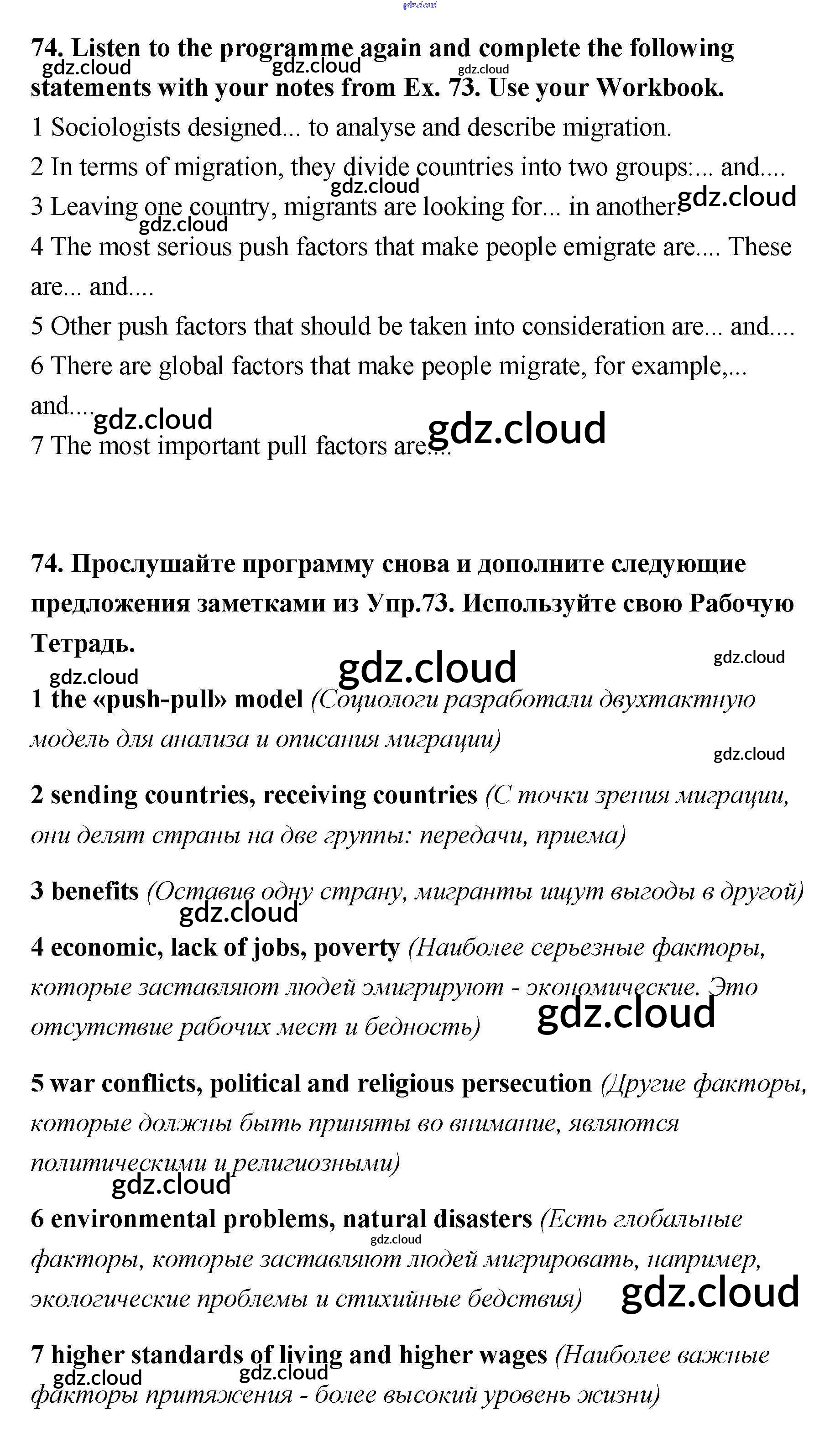 Ответ на задание 74 Учебник Английский язык за 11 (одиннадцатый) класс Биболетова, Трубанева Enjoy English 2015 ФГОС онлайн и без номера телефона.
