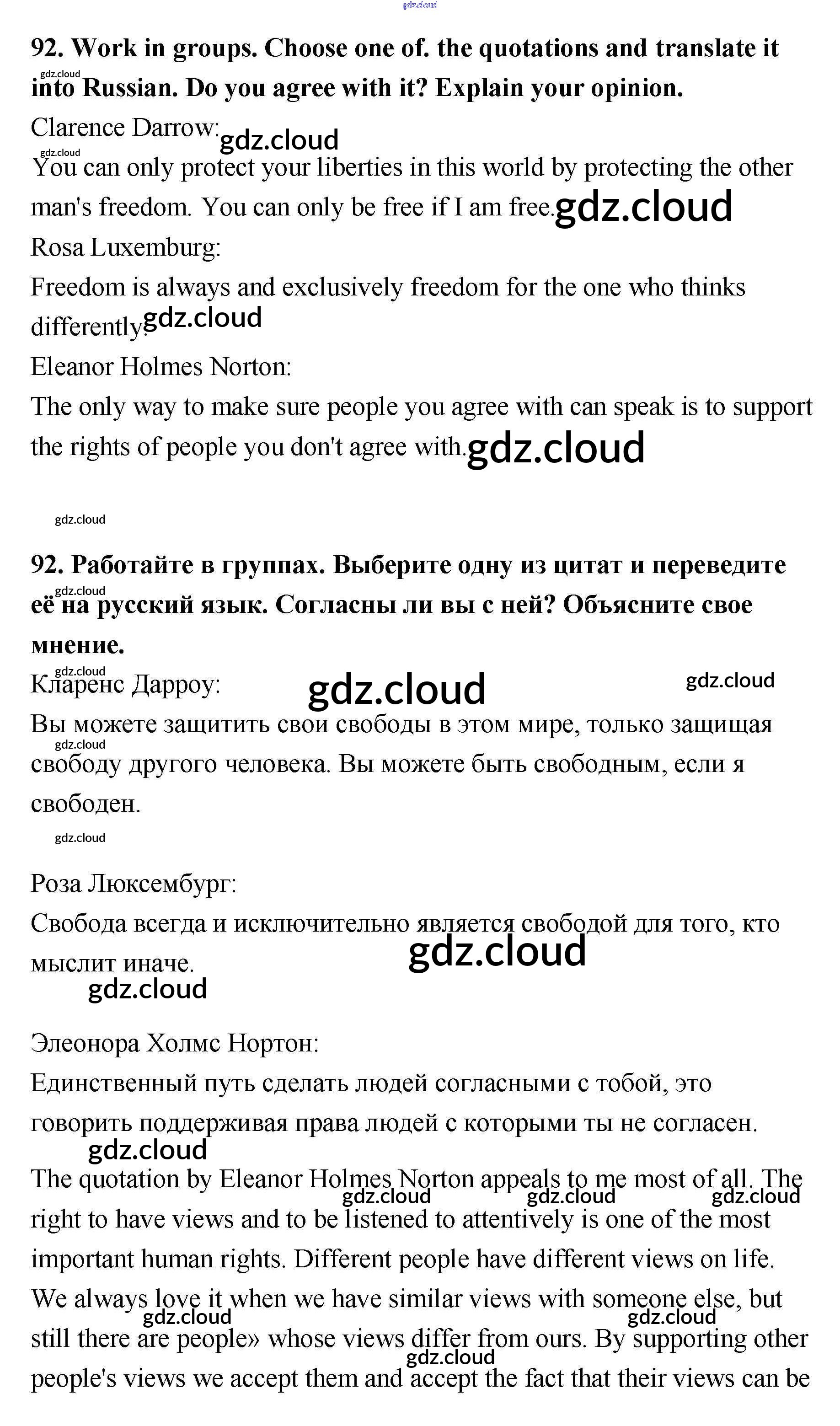 Ответ на задание 92 Учебник Английский язык за 11 (одиннадцатый) класс Биболетова, Трубанева Enjoy English 2015 ФГОС онлайн и без номера телефона.