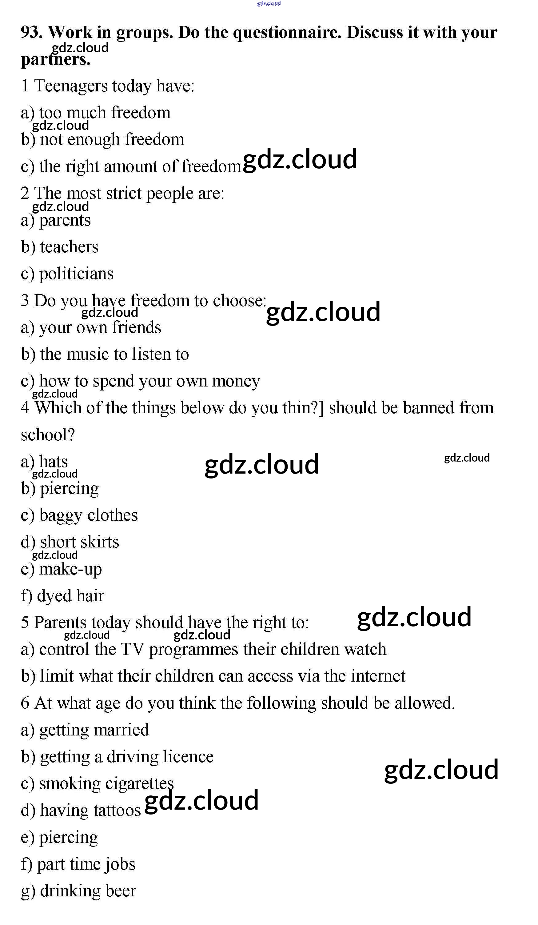Ответ на задание 93 Учебник Английский язык за 11 (одиннадцатый) класс Биболетова, Трубанева Enjoy English 2015 ФГОС онлайн и без номера телефона.