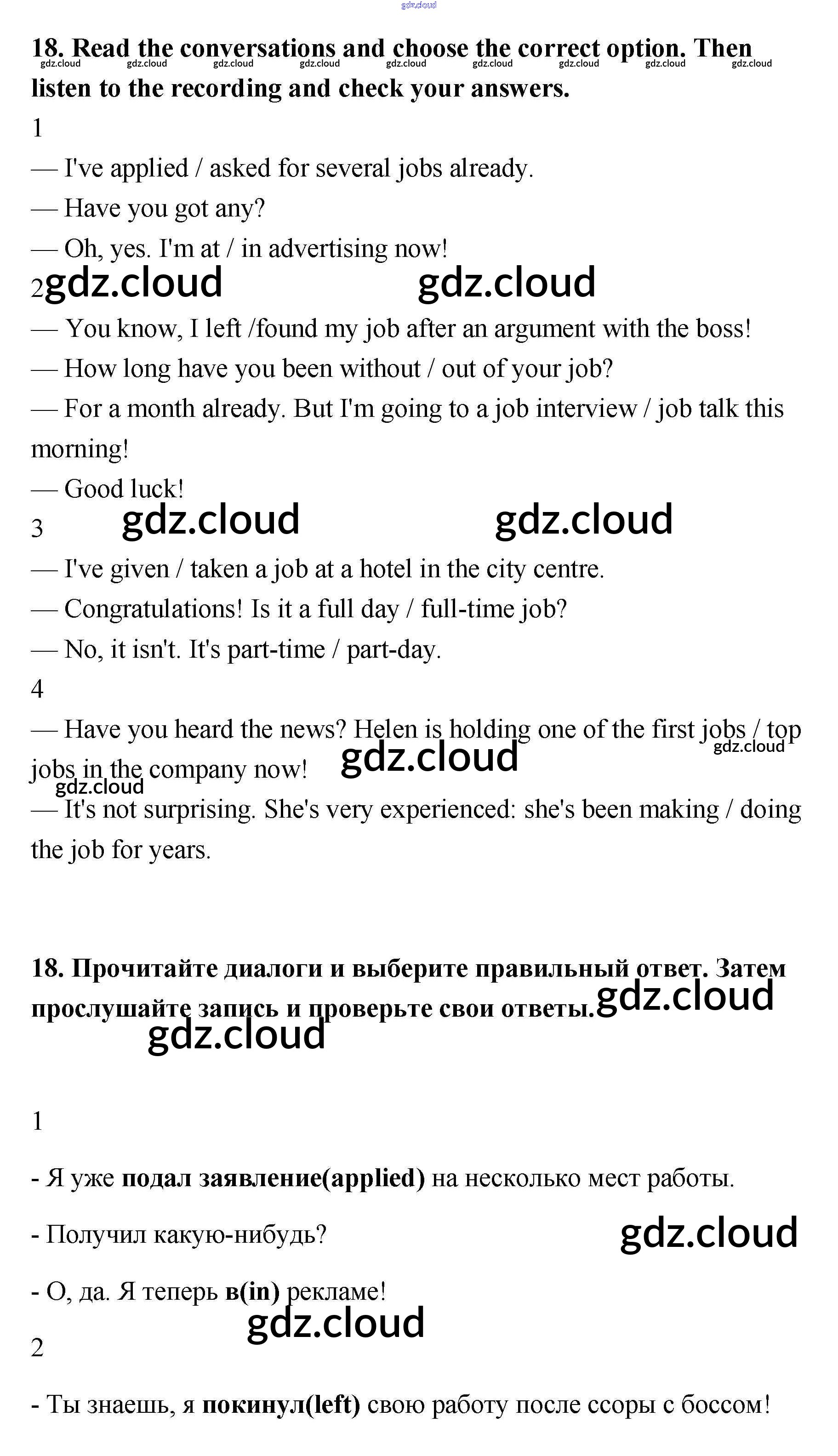 Ответ на задание 18 Учебник Английский язык за 11 (одиннадцатый) класс Биболетова, Трубанева Enjoy English 2015 ФГОС онлайн и без номера телефона.