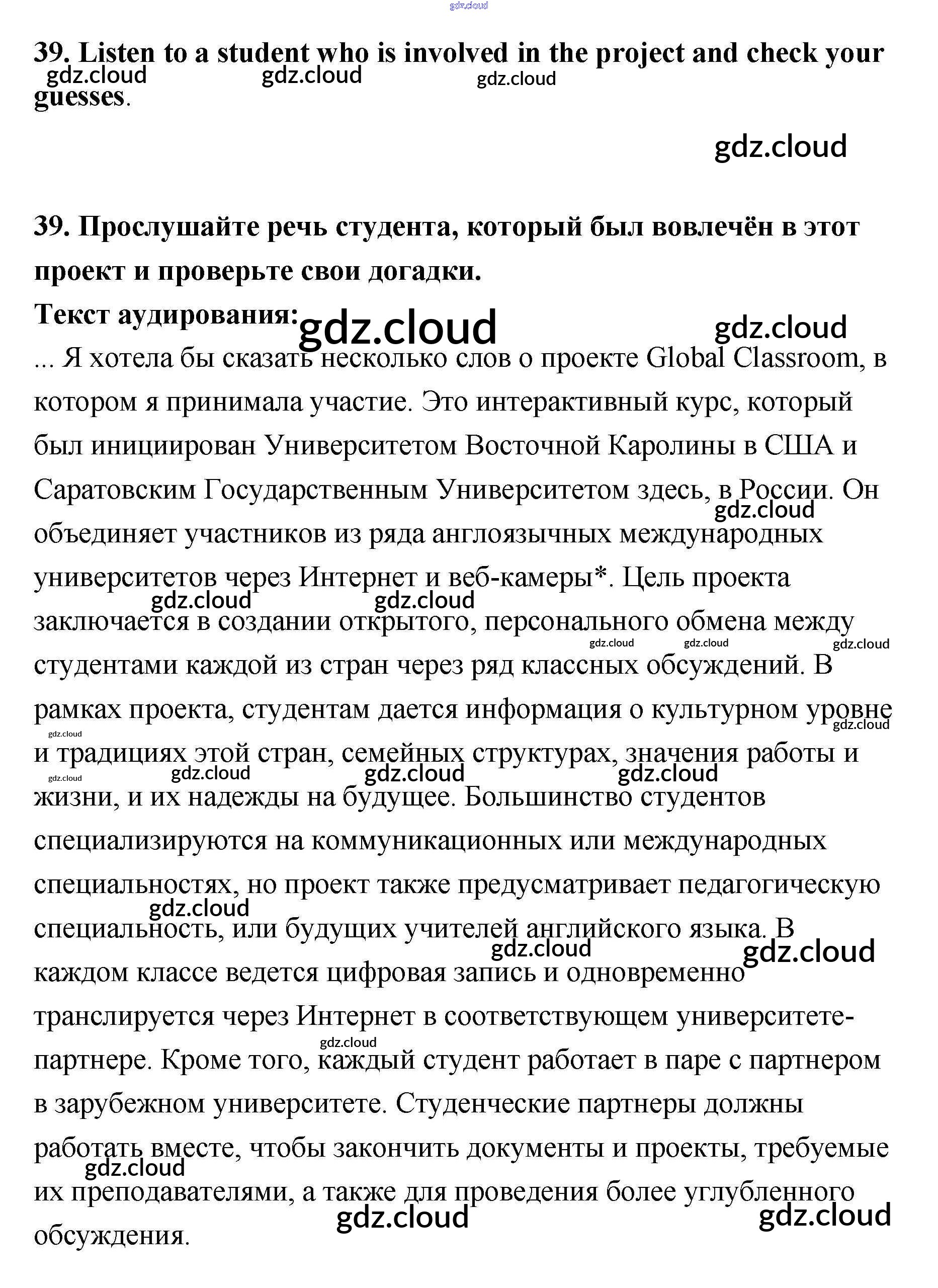 Ответ на задание 39 Учебник Английский язык за 11 (одиннадцатый) класс Биболетова, Трубанева Enjoy English 2015 ФГОС онлайн и без номера телефона.