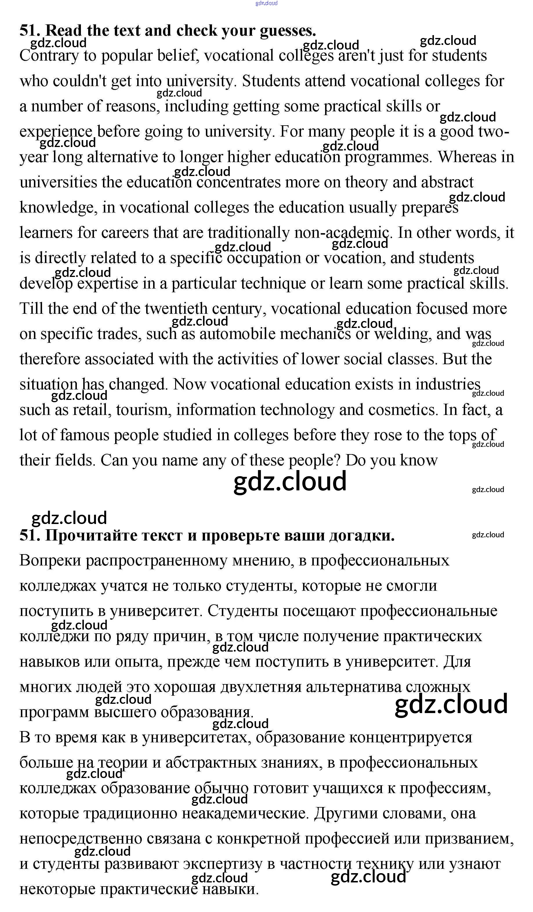 Ответ на задание 51 Учебник Английский язык за 11 (одиннадцатый) класс Биболетова, Трубанева Enjoy English 2015 ФГОС онлайн и без номера телефона.