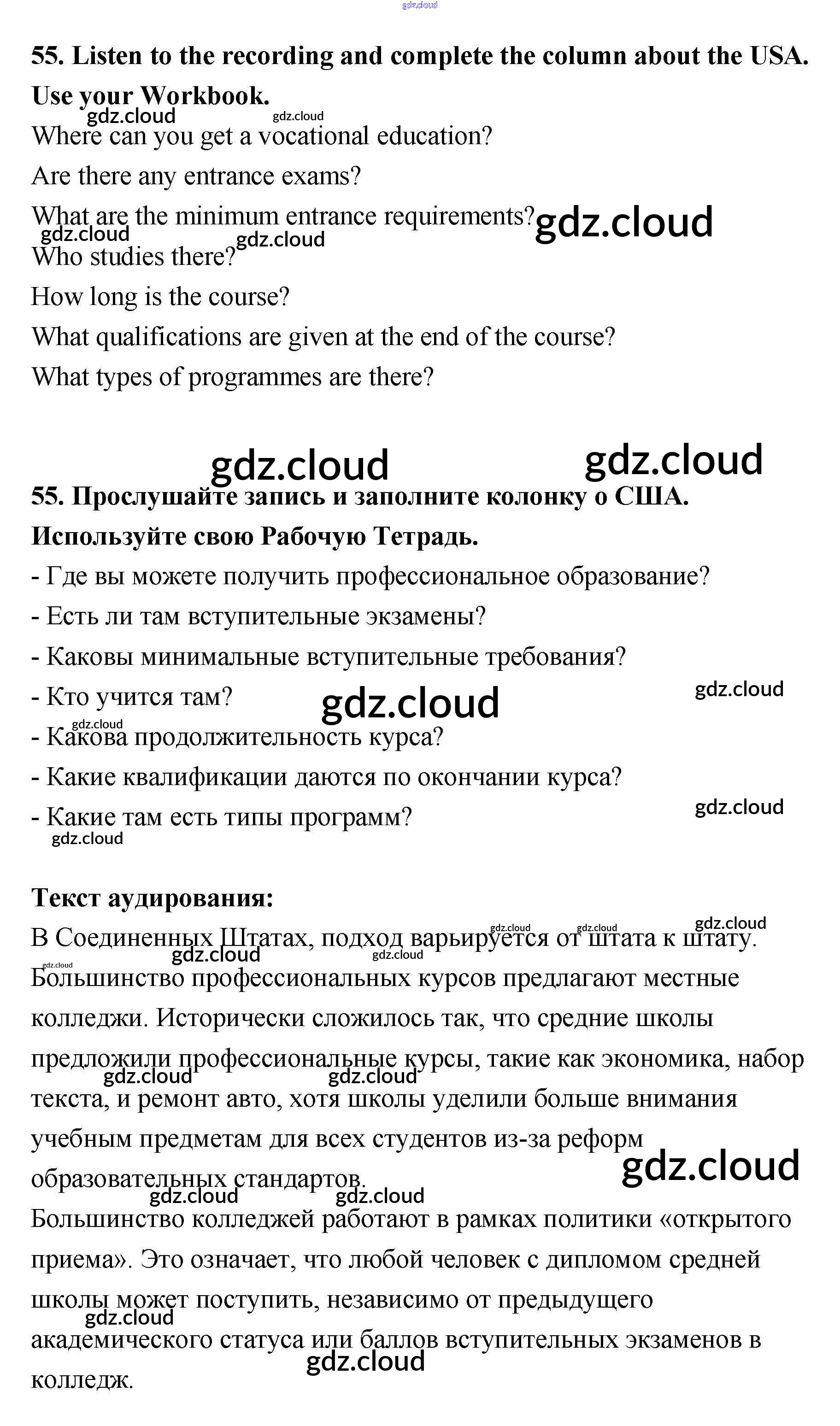 Ответ на задание 55 Учебник Английский язык за 11 (одиннадцатый) класс Биболетова, Трубанева Enjoy English 2015 ФГОС онлайн и без номера телефона.