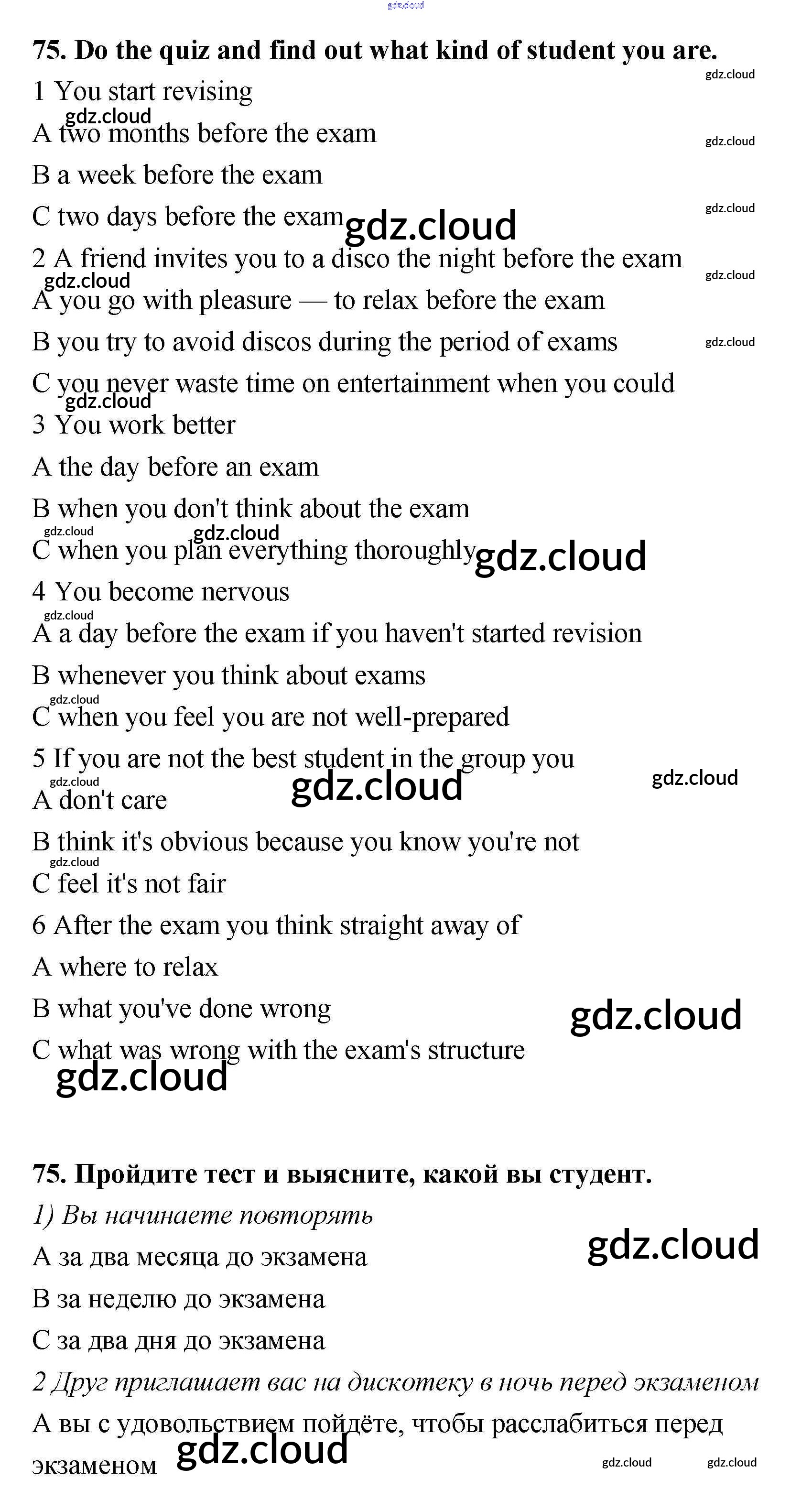 Ответ на задание 75 Учебник Английский язык за 11 (одиннадцатый) класс Биболетова, Трубанева Enjoy English 2015 ФГОС онлайн и без номера телефона.