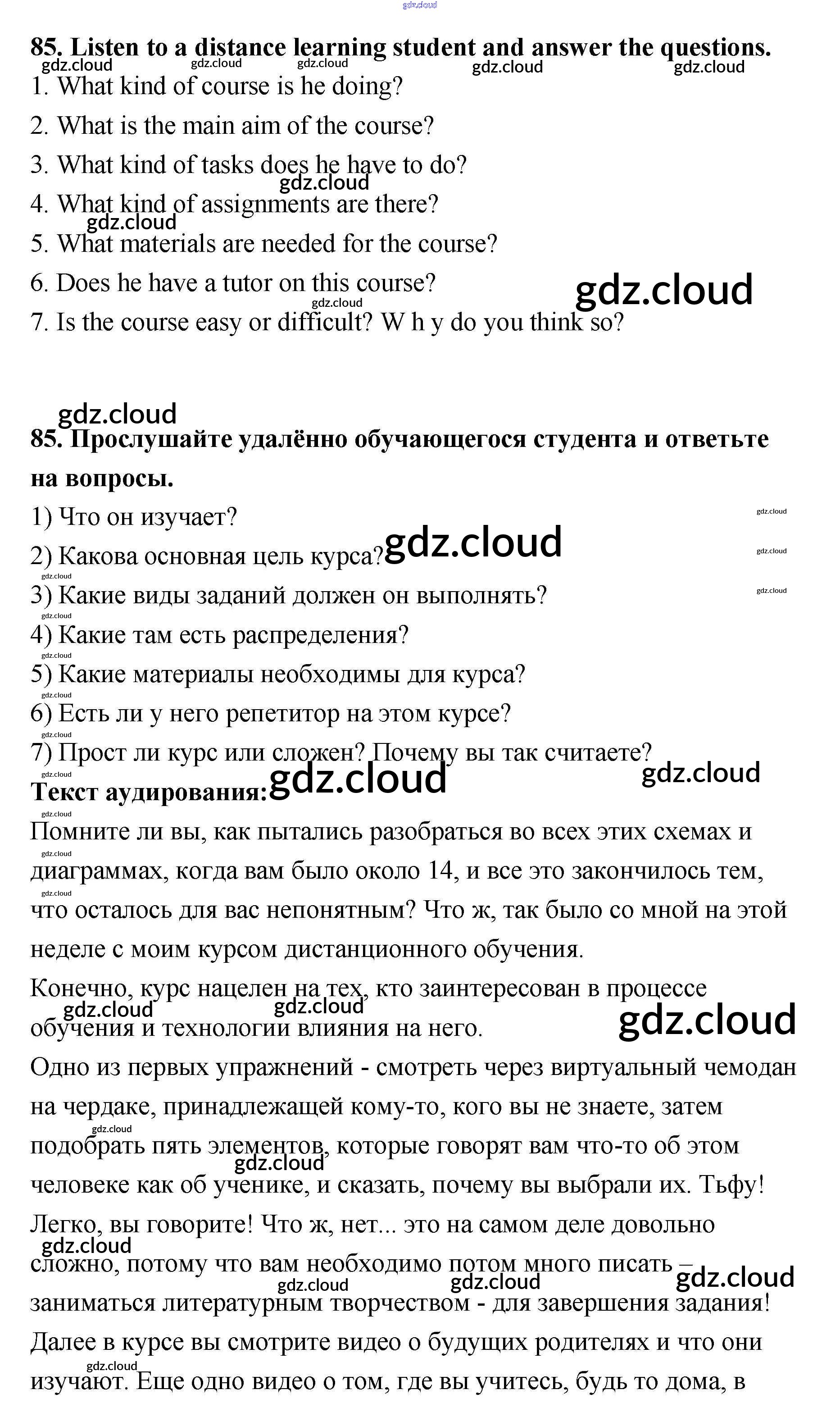 Ответ на задание 85 Учебник Английский язык за 11 (одиннадцатый) класс Биболетова, Трубанева Enjoy English 2015 ФГОС онлайн и без номера телефона.