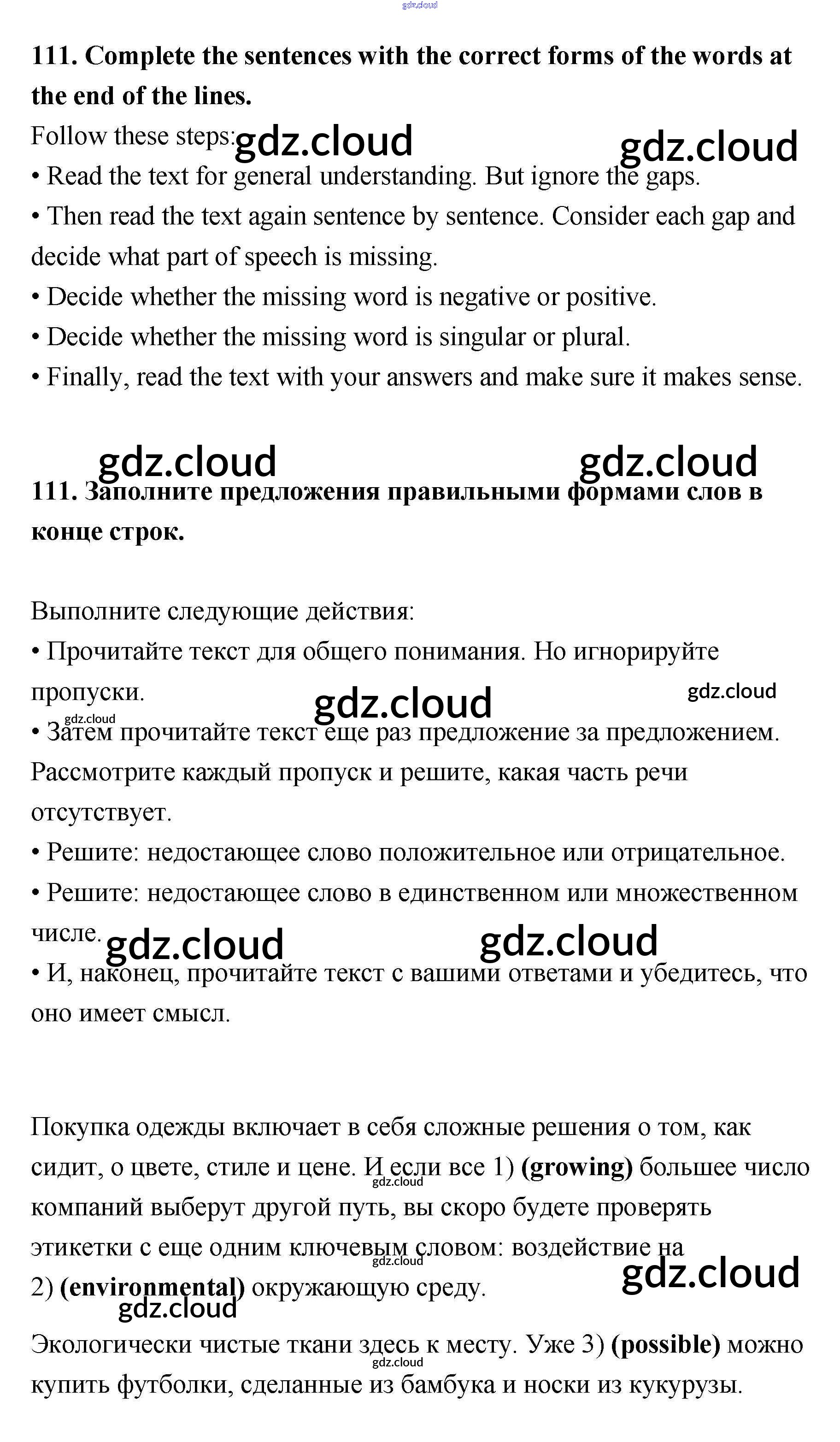 Ответ на задание 111 Учебник Английский язык за 11 (одиннадцатый) класс Биболетова, Трубанева Enjoy English 2015 ФГОС онлайн и без номера телефона.
