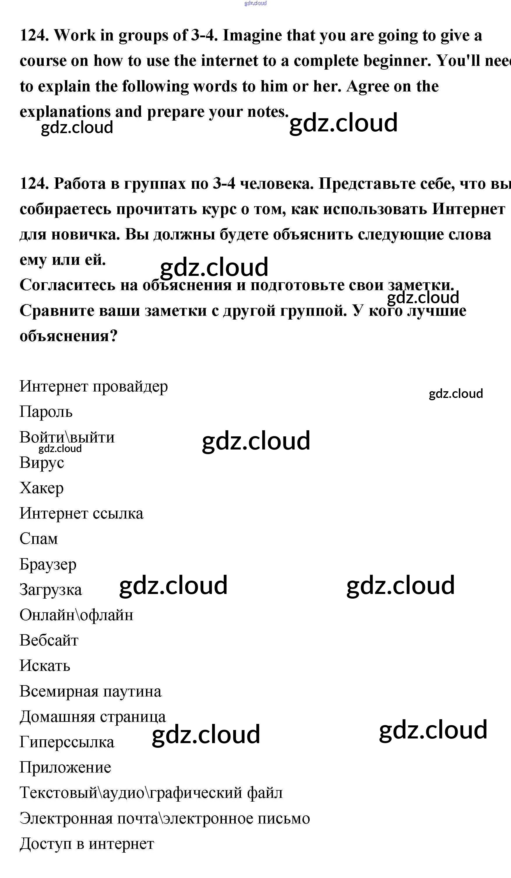 Ответ на задание 124 Учебник Английский язык за 11 (одиннадцатый) класс Биболетова, Трубанева Enjoy English 2015 ФГОС онлайн и без номера телефона.