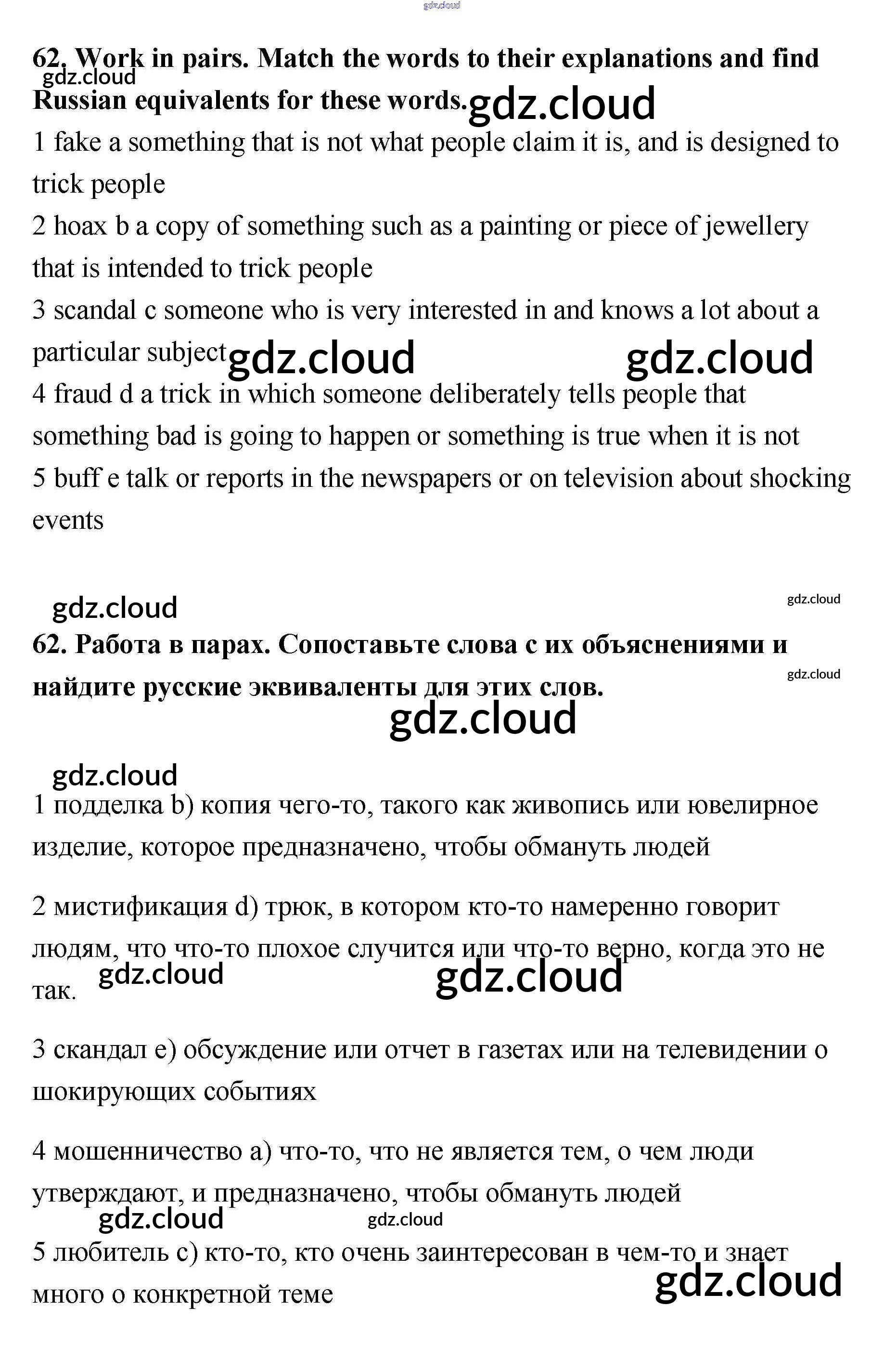 Ответ на задание 62 Учебник Английский язык за 11 (одиннадцатый) класс Биболетова, Трубанева Enjoy English 2015 ФГОС онлайн и без номера телефона.