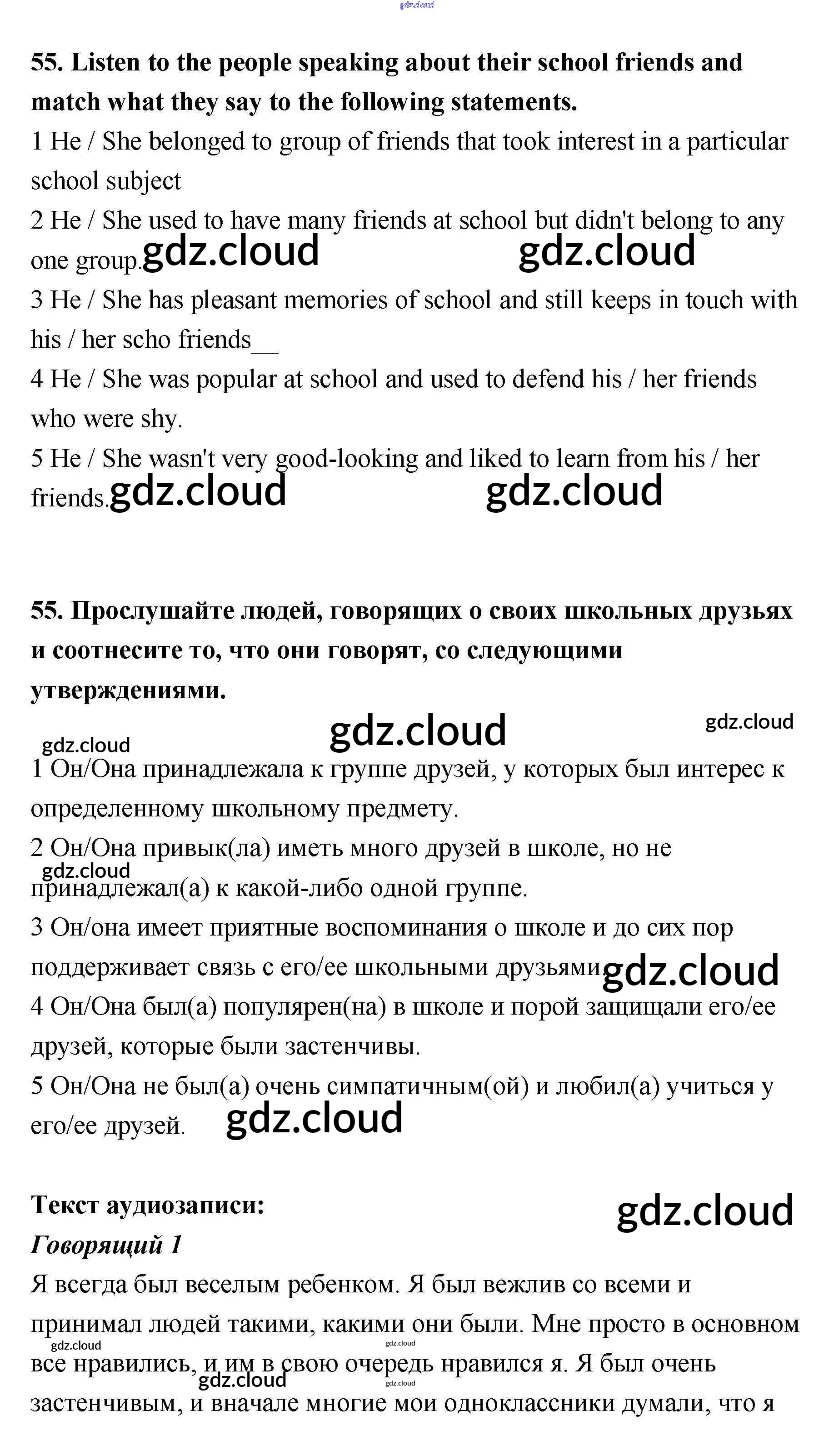 Ответ на задание 55 Учебник Английский язык за 11 (одиннадцатый) класс Биболетова, Трубанева Enjoy English 2015 ФГОС онлайн и без номера телефона.