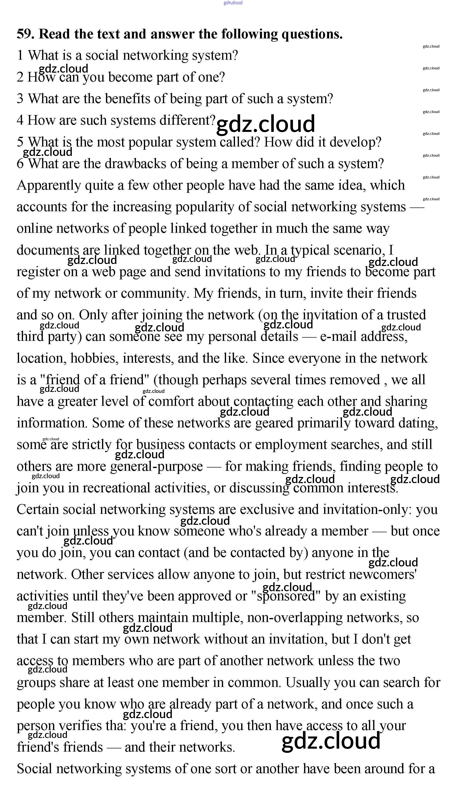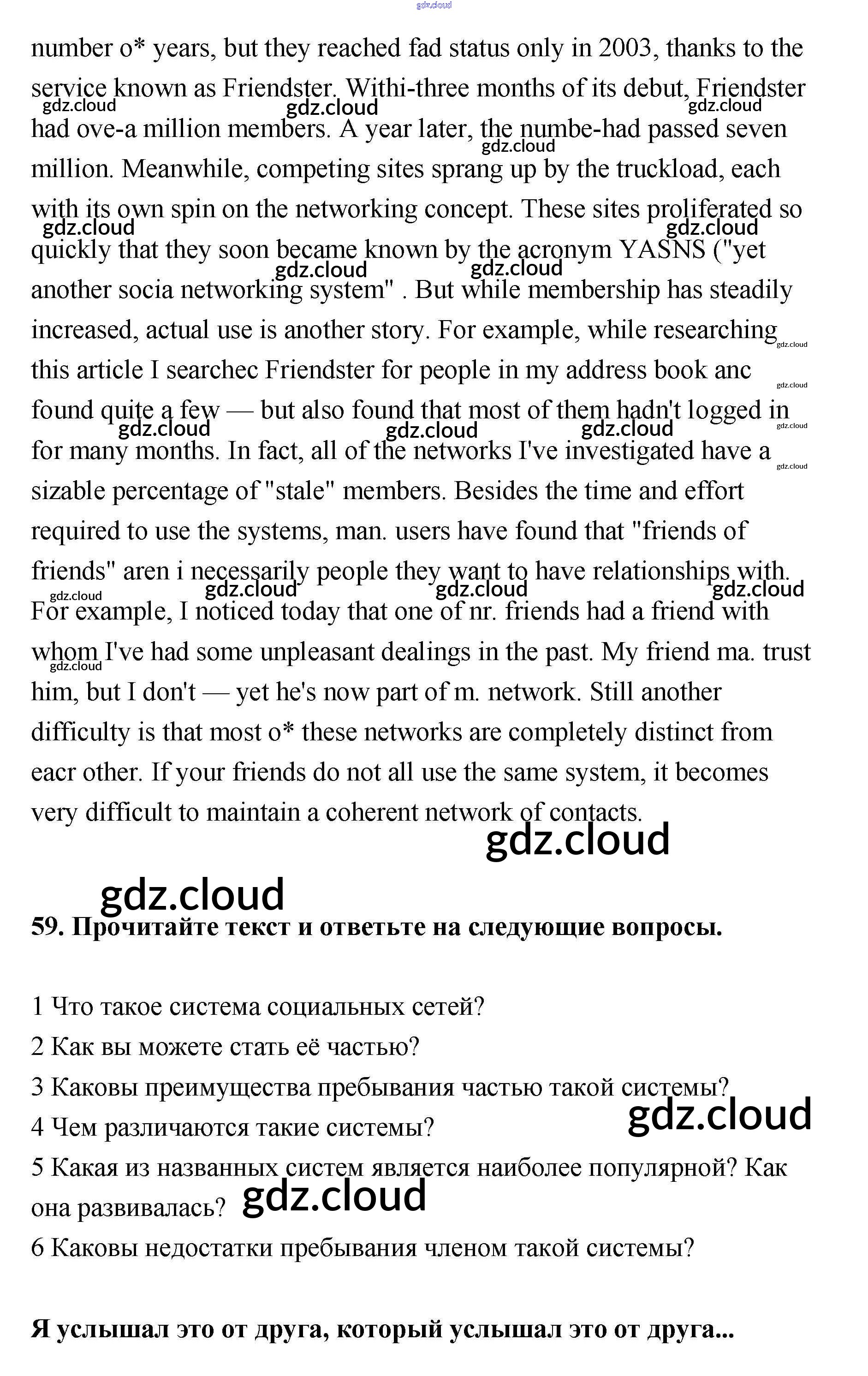 Ответ на задание 59 Учебник Английский язык за 11 (одиннадцатый) класс Биболетова, Трубанева Enjoy English 2015 ФГОС онлайн и без номера телефона.