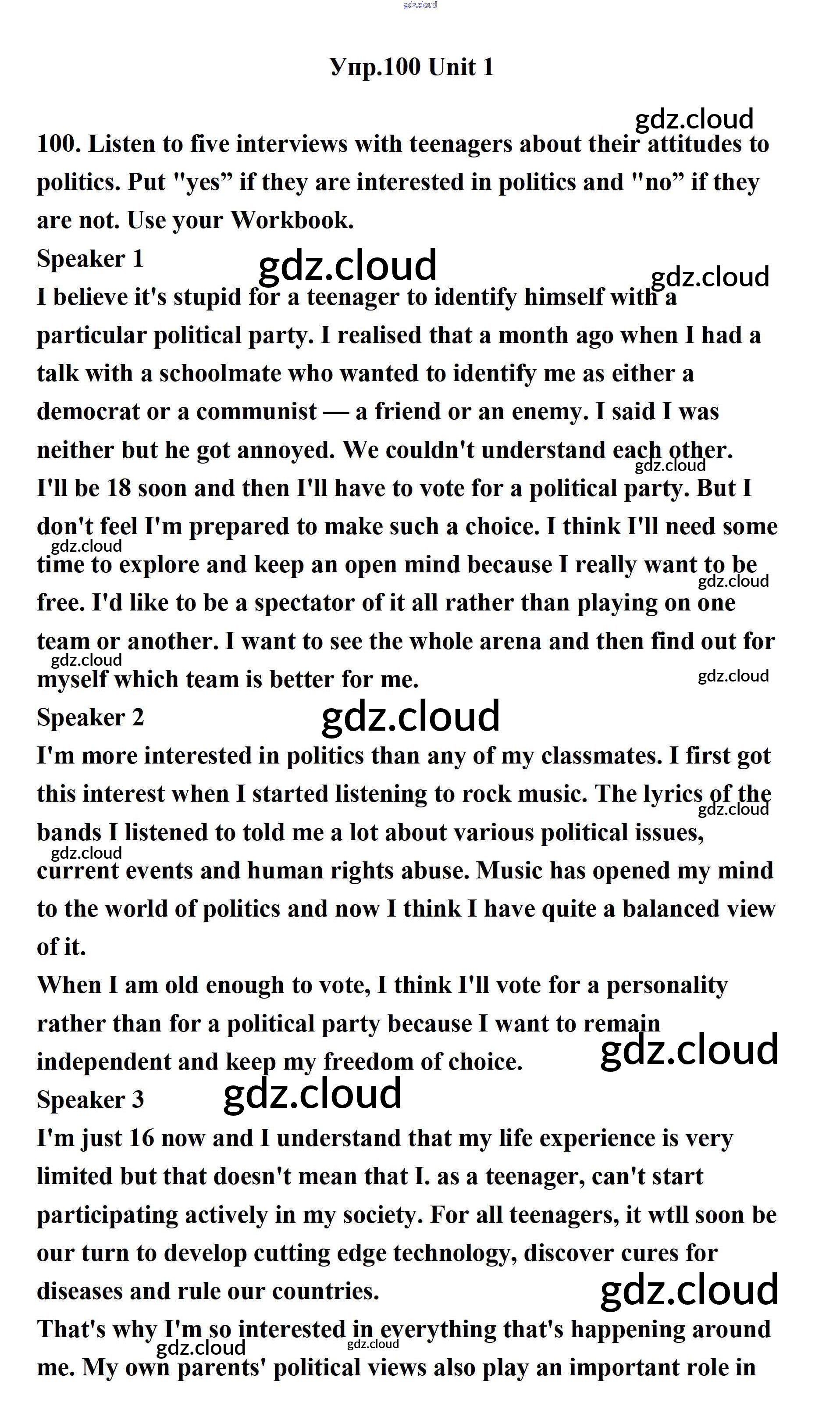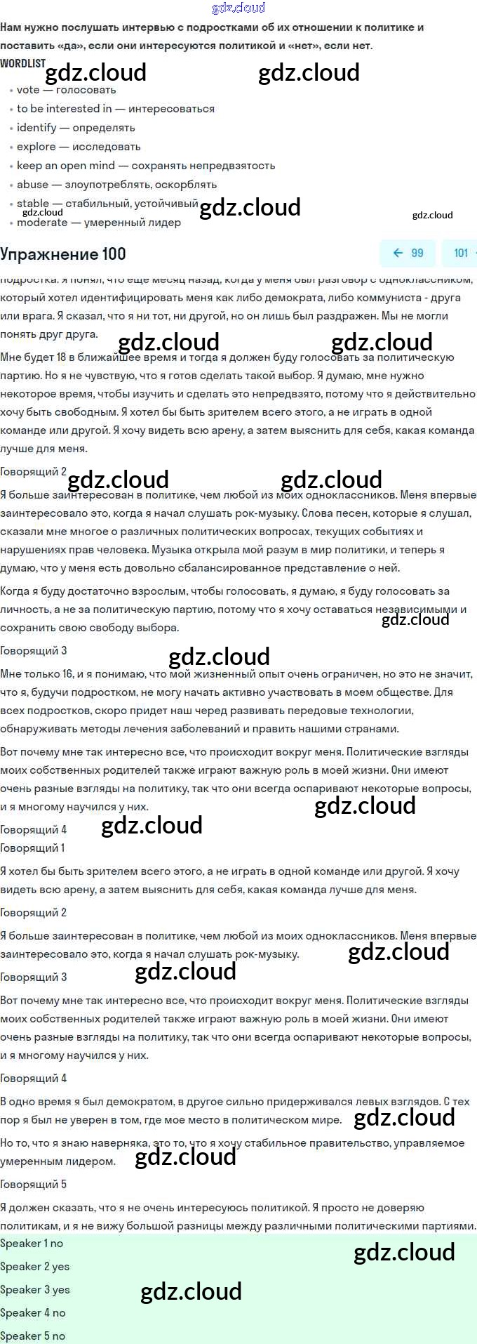 Ответ на задание 100 Учебник Английский язык за 11 (одиннадцатый) класс Биболетова, Бабушис, Снежко Enjoy English 2017