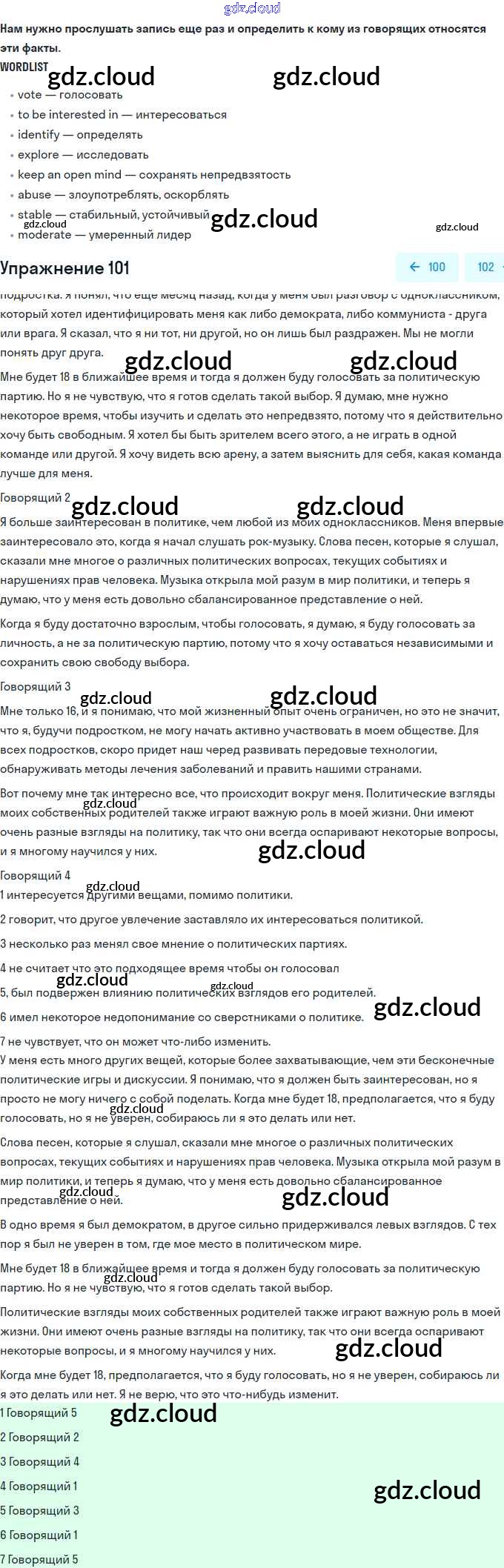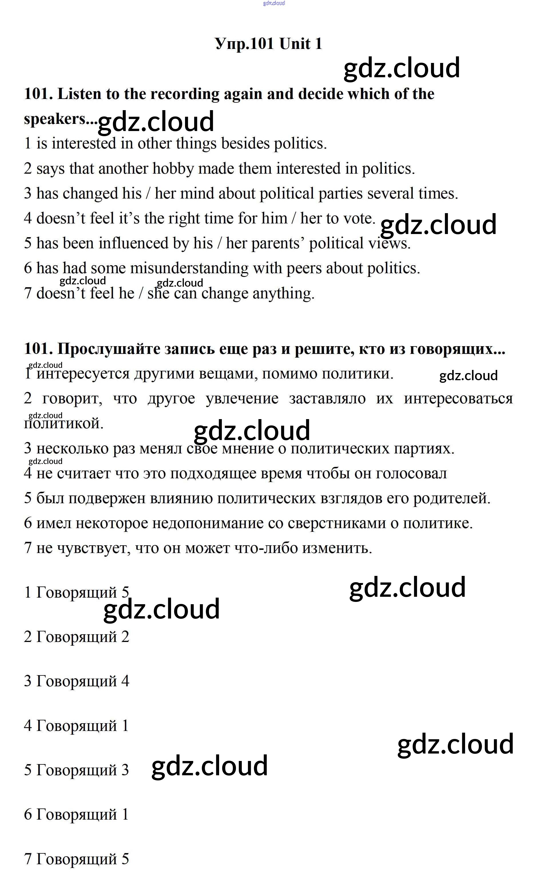 Ответ на задание 101 Учебник Английский язык за 11 (одиннадцатый) класс Биболетова, Бабушис, Снежко Enjoy English 2017