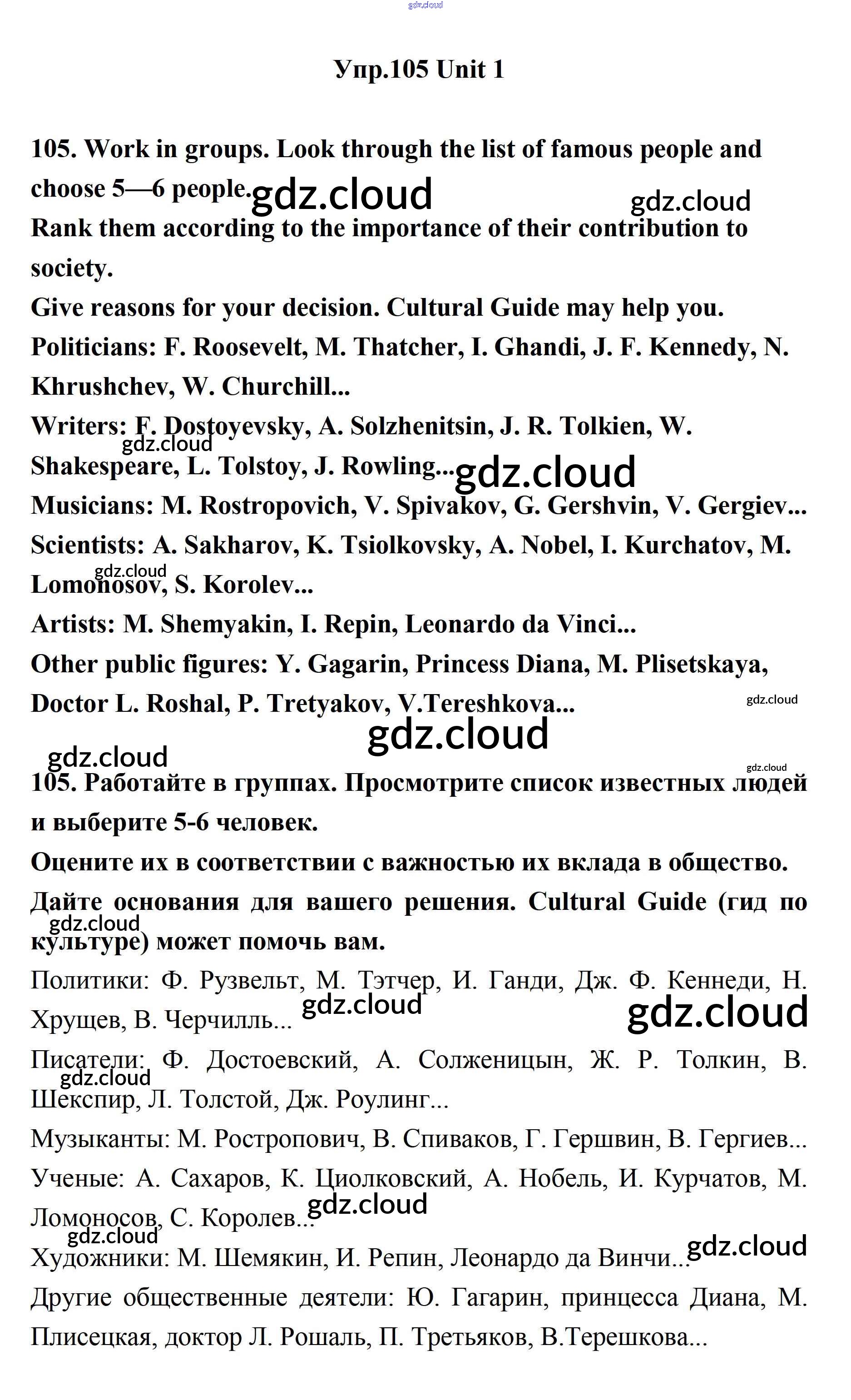 Ответ на задание 105 Учебник Английский язык за 11 (одиннадцатый) класс Биболетова, Бабушис, Снежко Enjoy English 2017