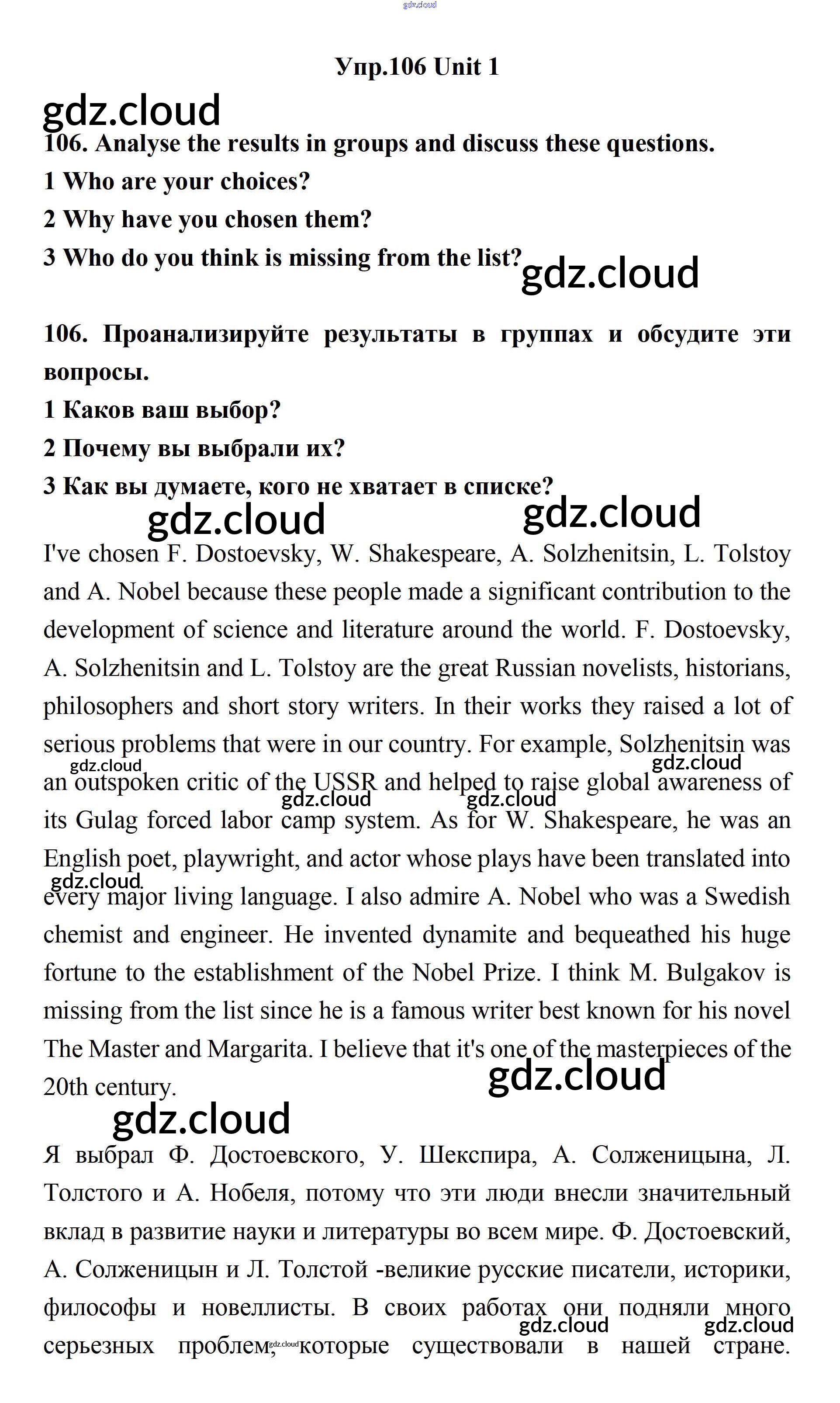 Ответ на задание 106 Учебник Английский язык за 11 (одиннадцатый) класс Биболетова, Бабушис, Снежко Enjoy English 2017
