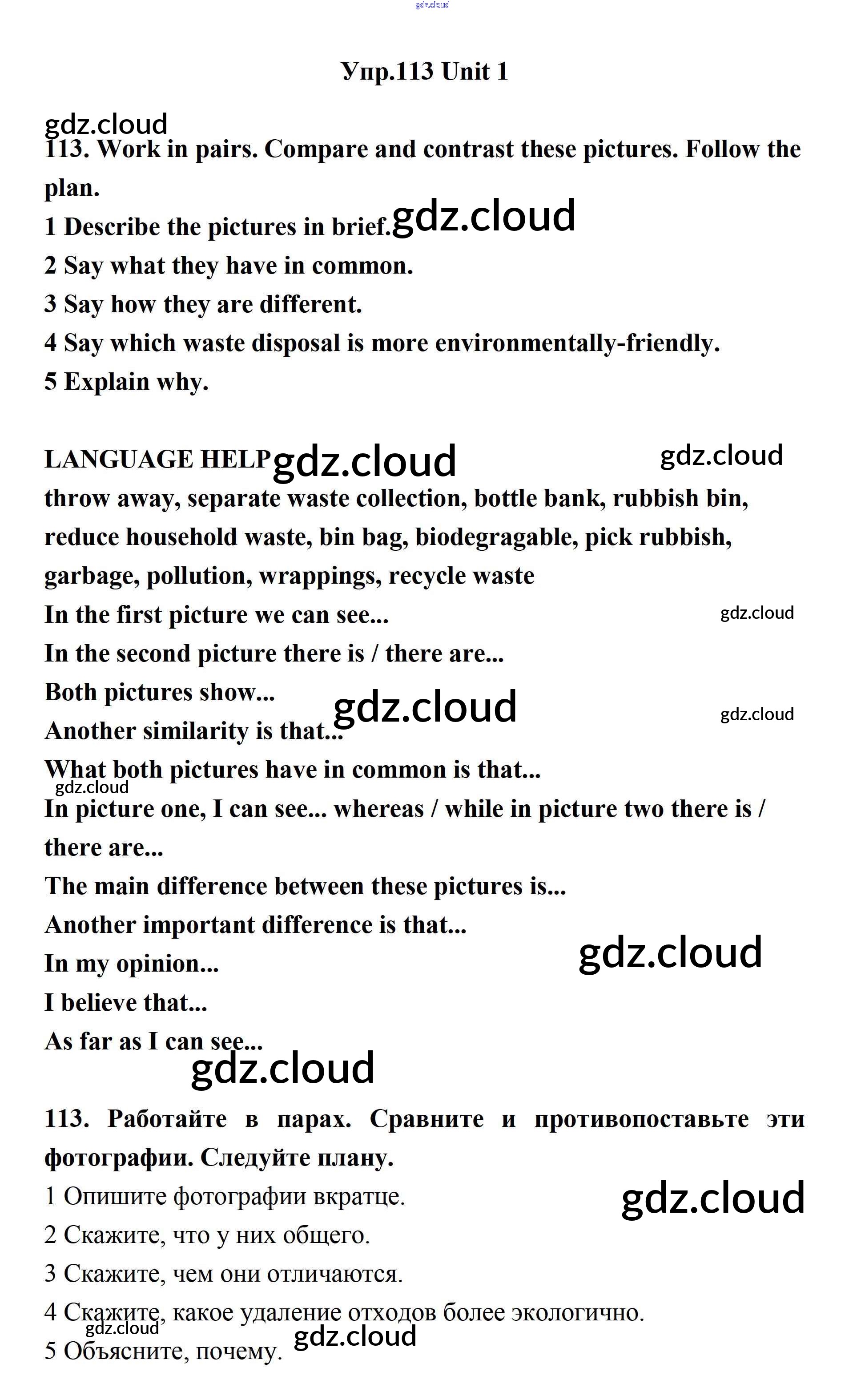 Ответ на задание 113 Учебник Английский язык за 11 (одиннадцатый) класс Биболетова, Бабушис, Снежко Enjoy English 2017