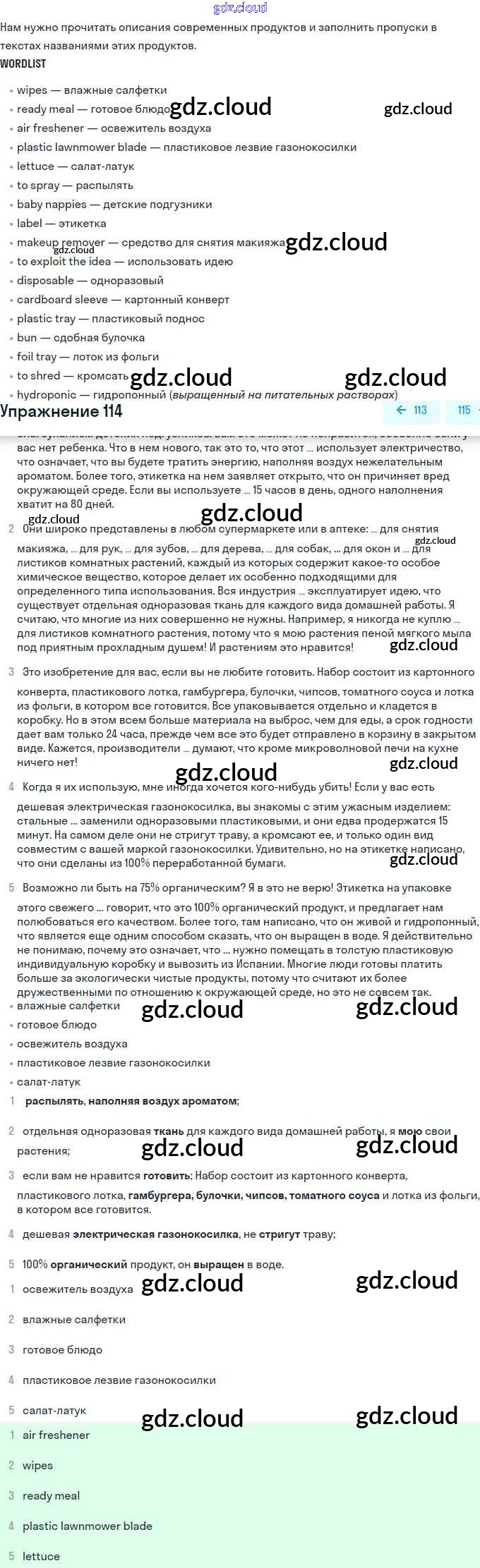 Ответ на задание 114 Учебник Английский язык за 11 (одиннадцатый) класс Биболетова, Бабушис, Снежко Enjoy English 2017