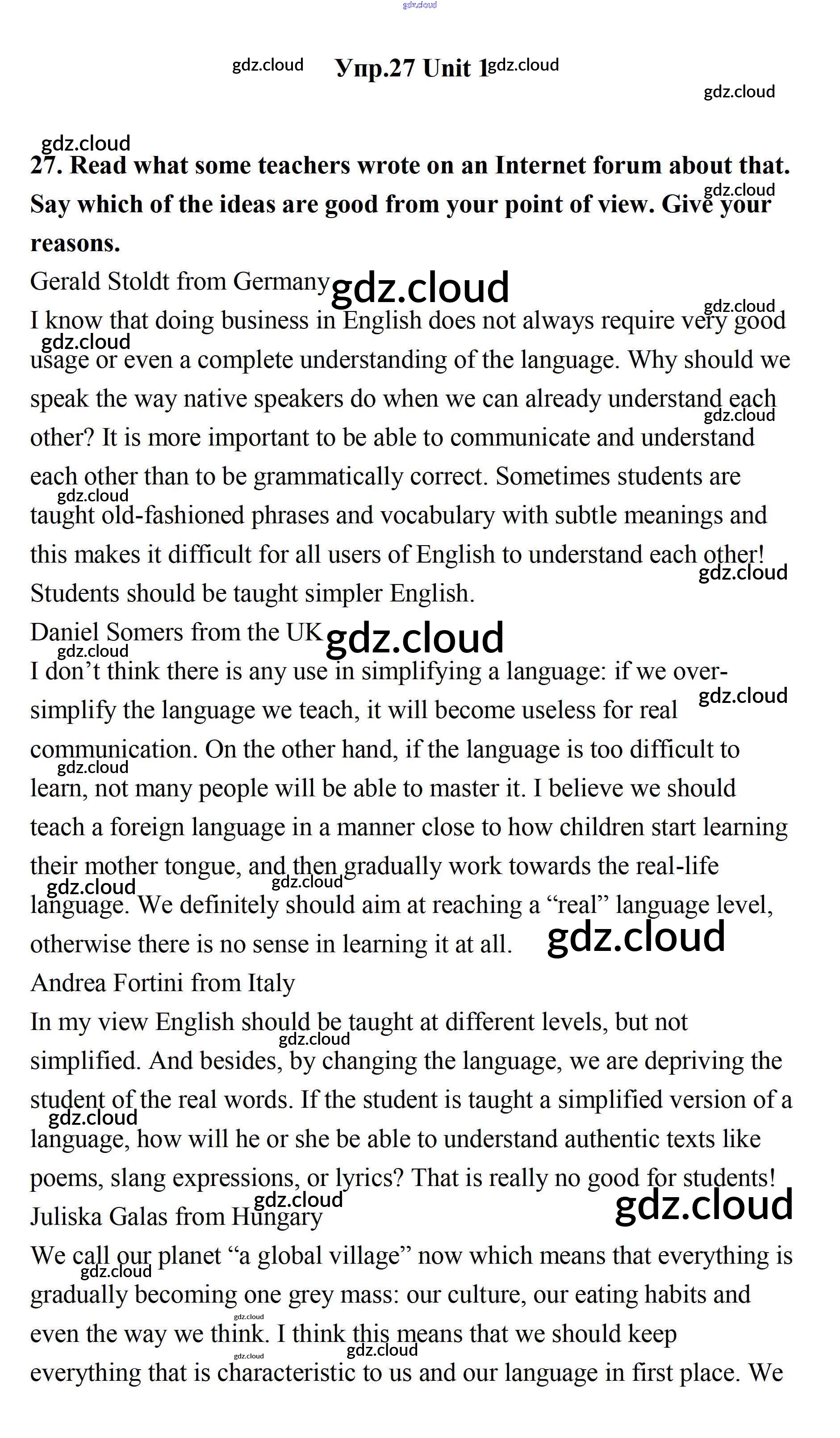 Ответ на задание 27 Учебник Английский язык за 11 (одиннадцатый) класс Биболетова, Бабушис, Снежко Enjoy English 2017