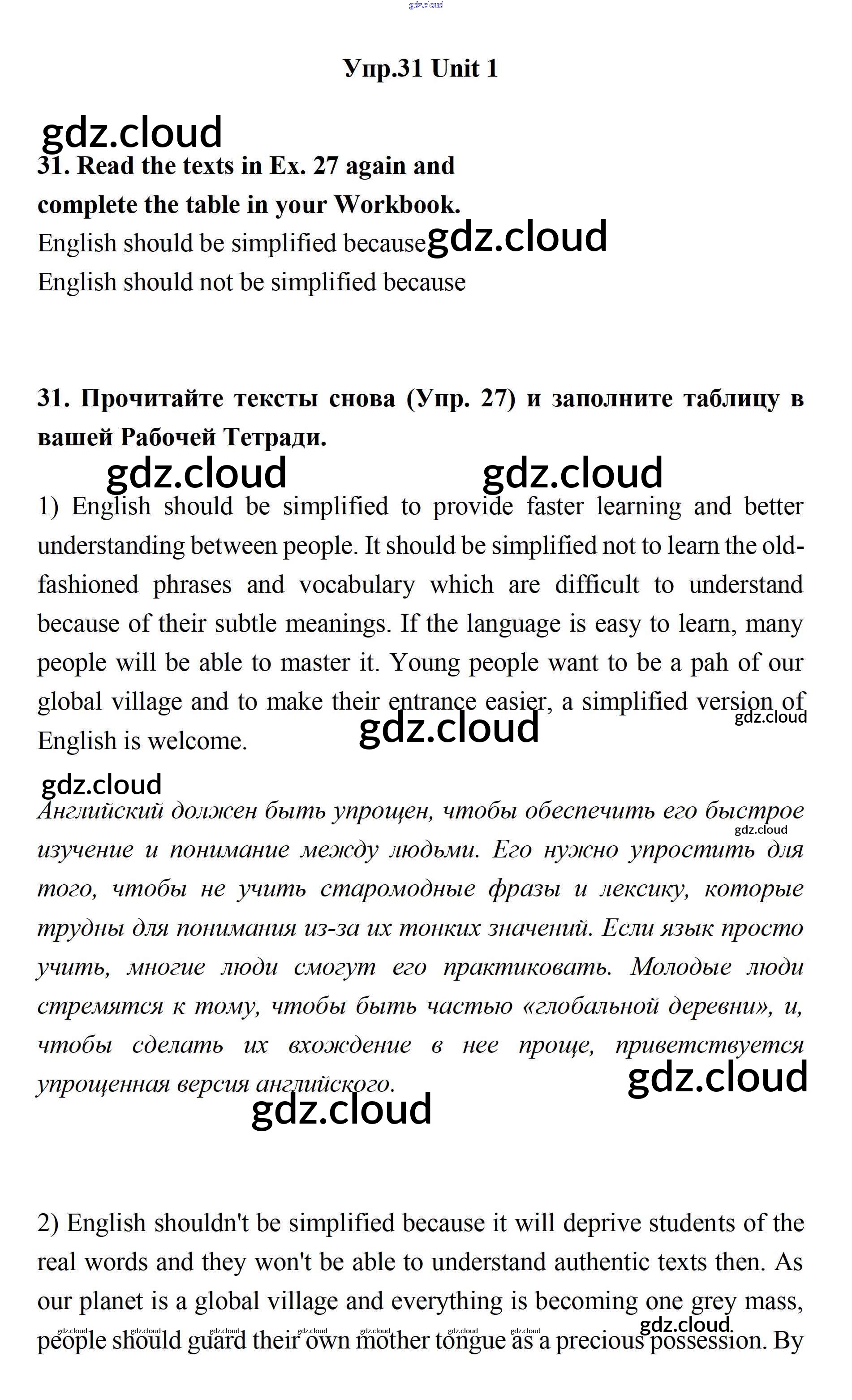 Ответ на задание 31 Учебник Английский язык за 11 (одиннадцатый) класс Биболетова, Бабушис, Снежко Enjoy English 2017
