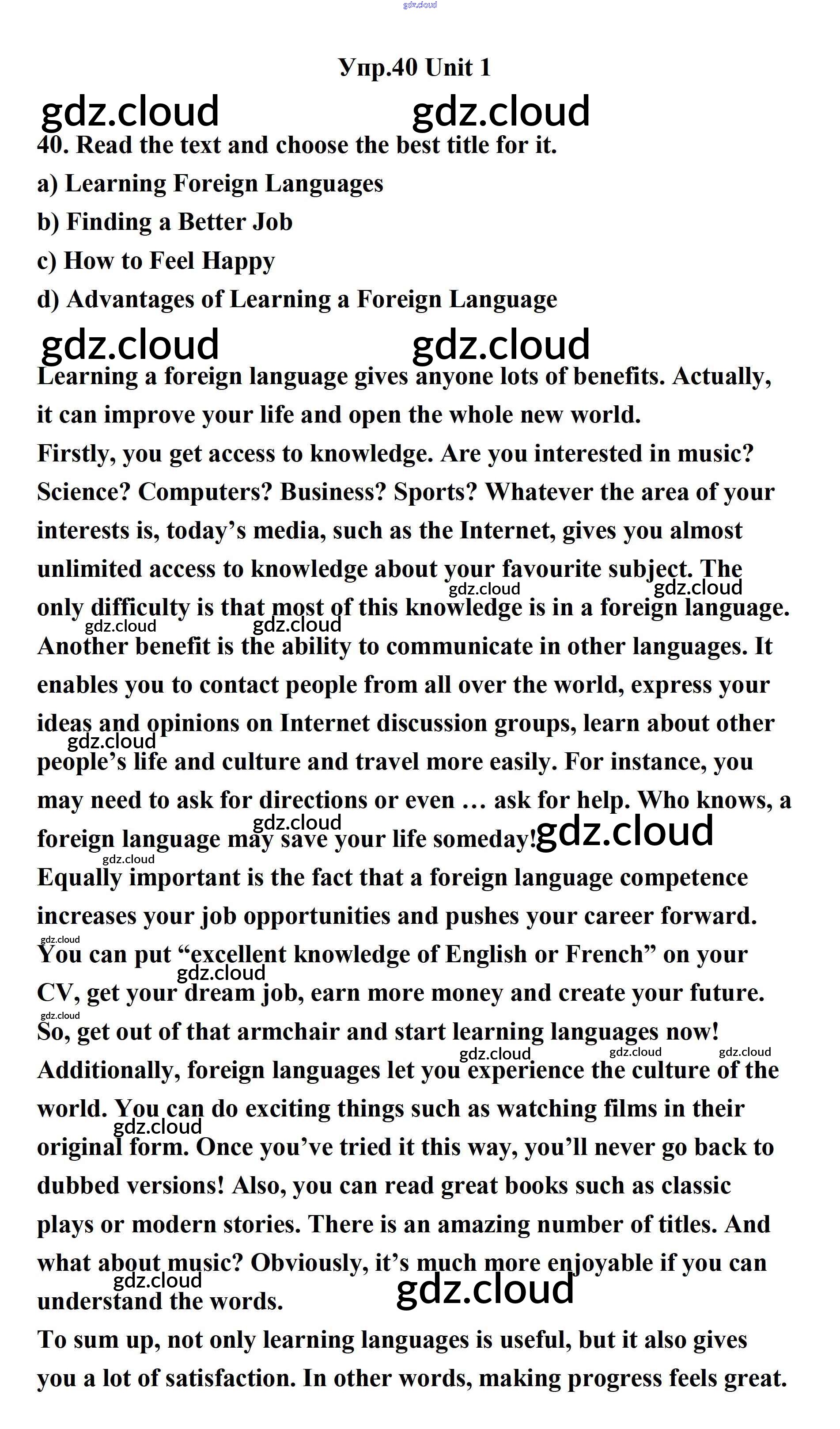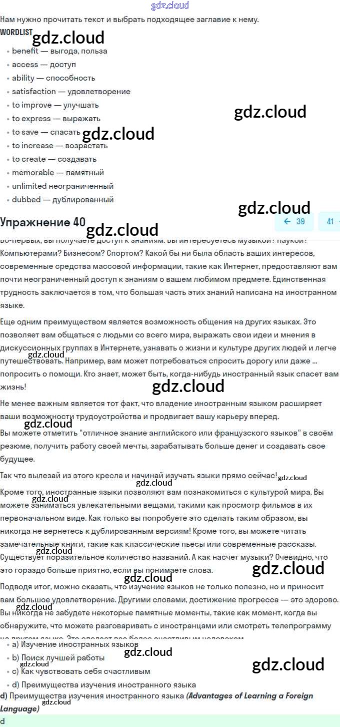 Ответ на задание 40 Учебник Английский язык за 11 (одиннадцатый) класс Биболетова, Бабушис, Снежко Enjoy English 2017