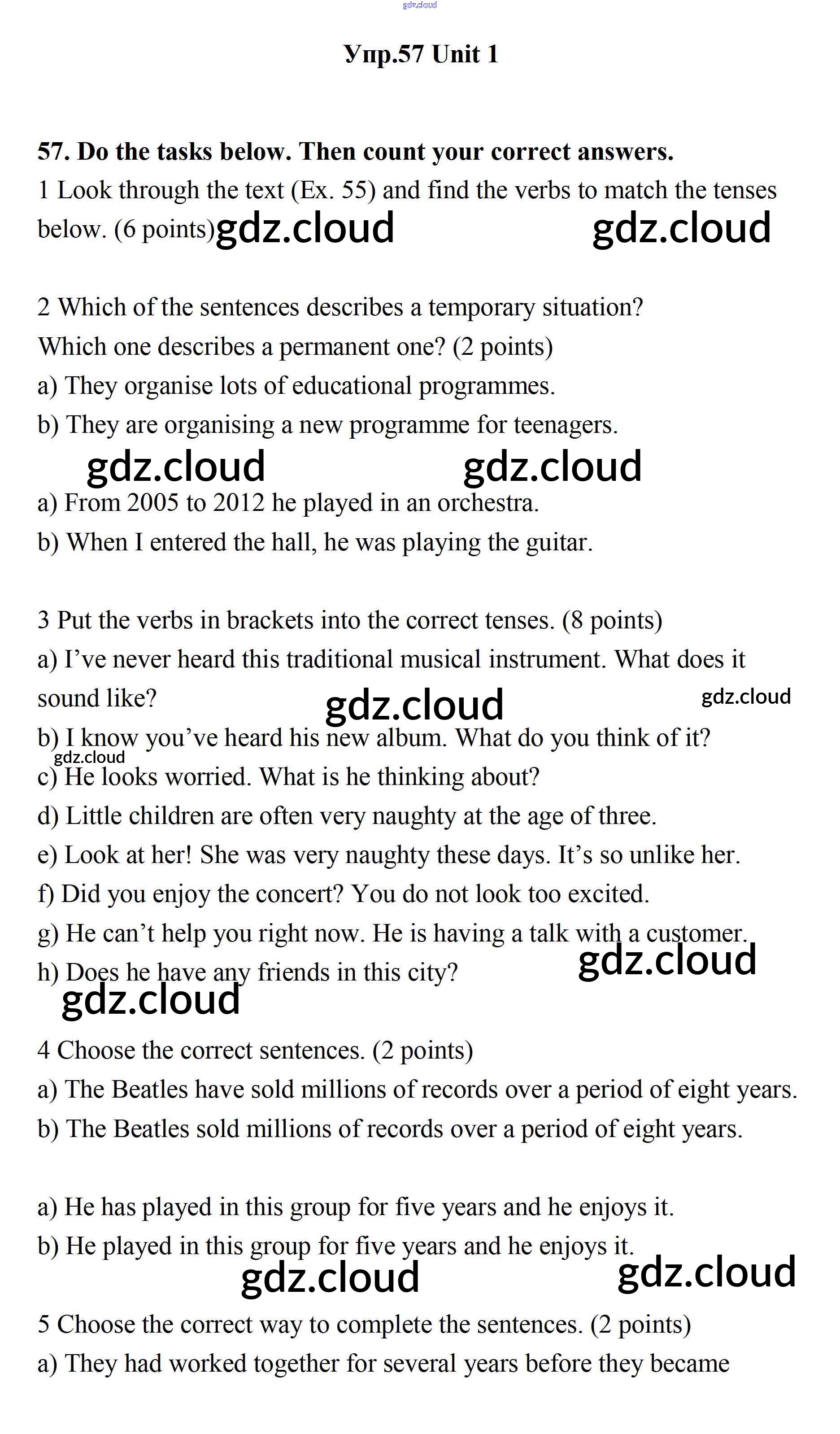 Ответ на задание 57 Учебник Английский язык за 11 (одиннадцатый) класс Биболетова, Бабушис, Снежко Enjoy English 2017