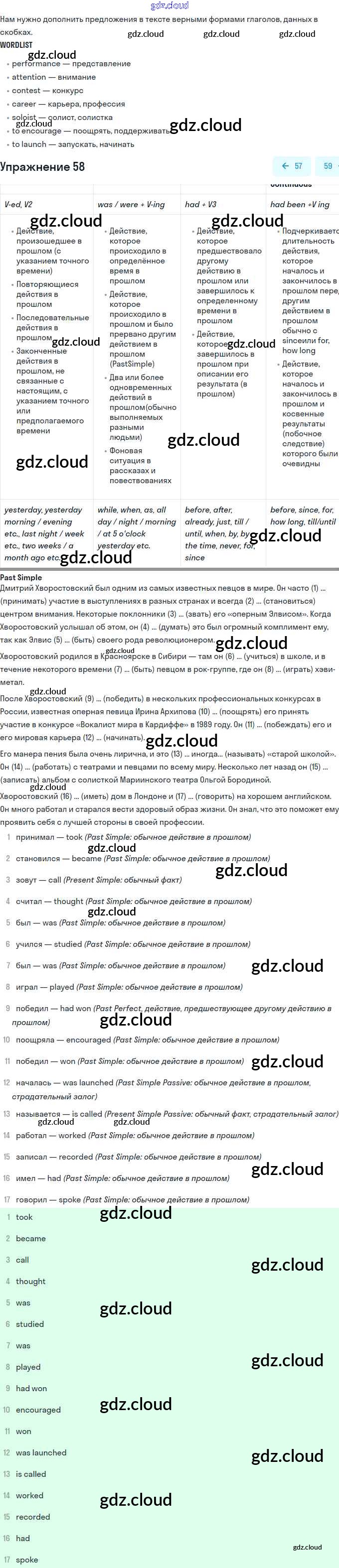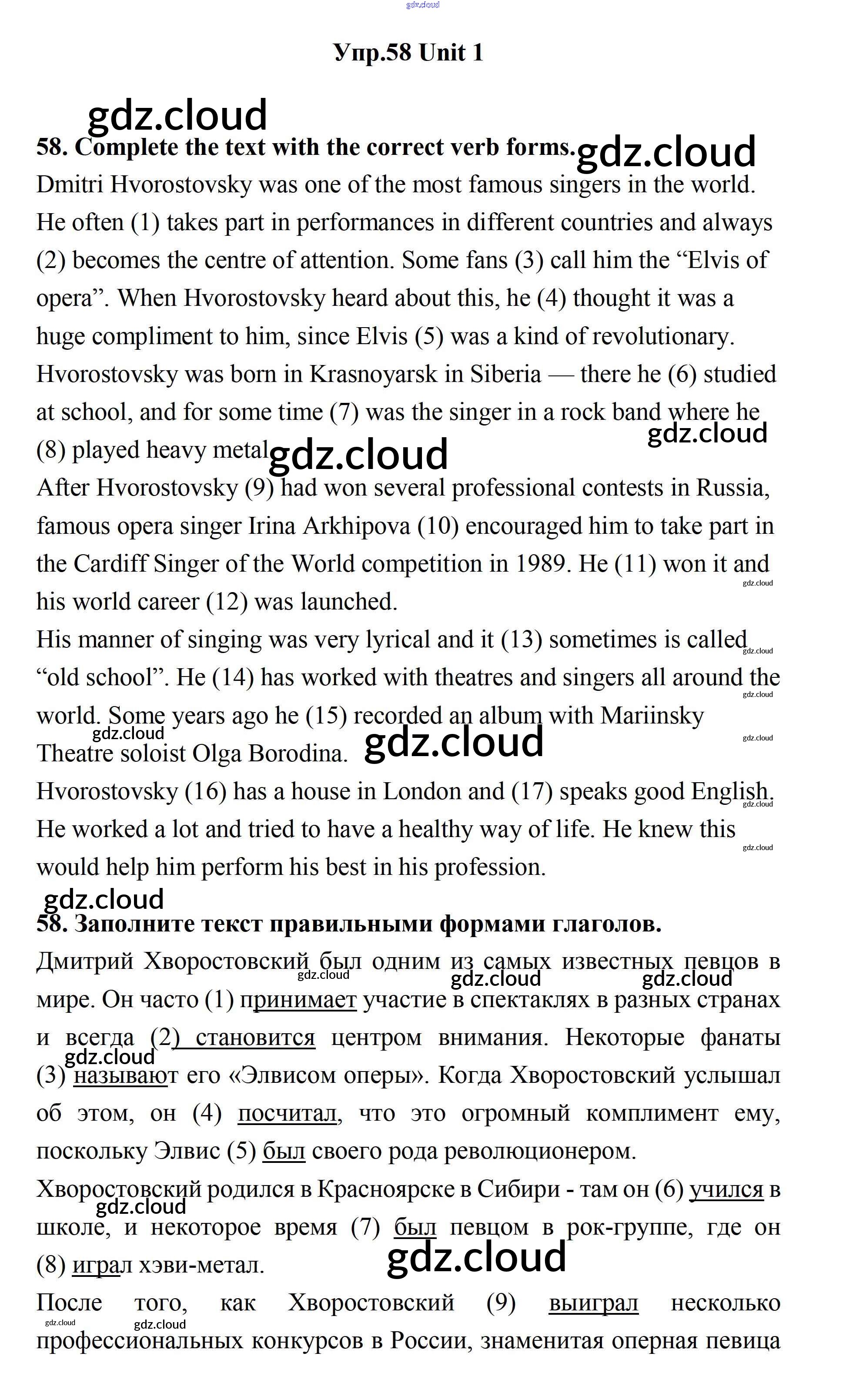 Ответ на задание 58 Учебник Английский язык за 11 (одиннадцатый) класс Биболетова, Бабушис, Снежко Enjoy English 2017