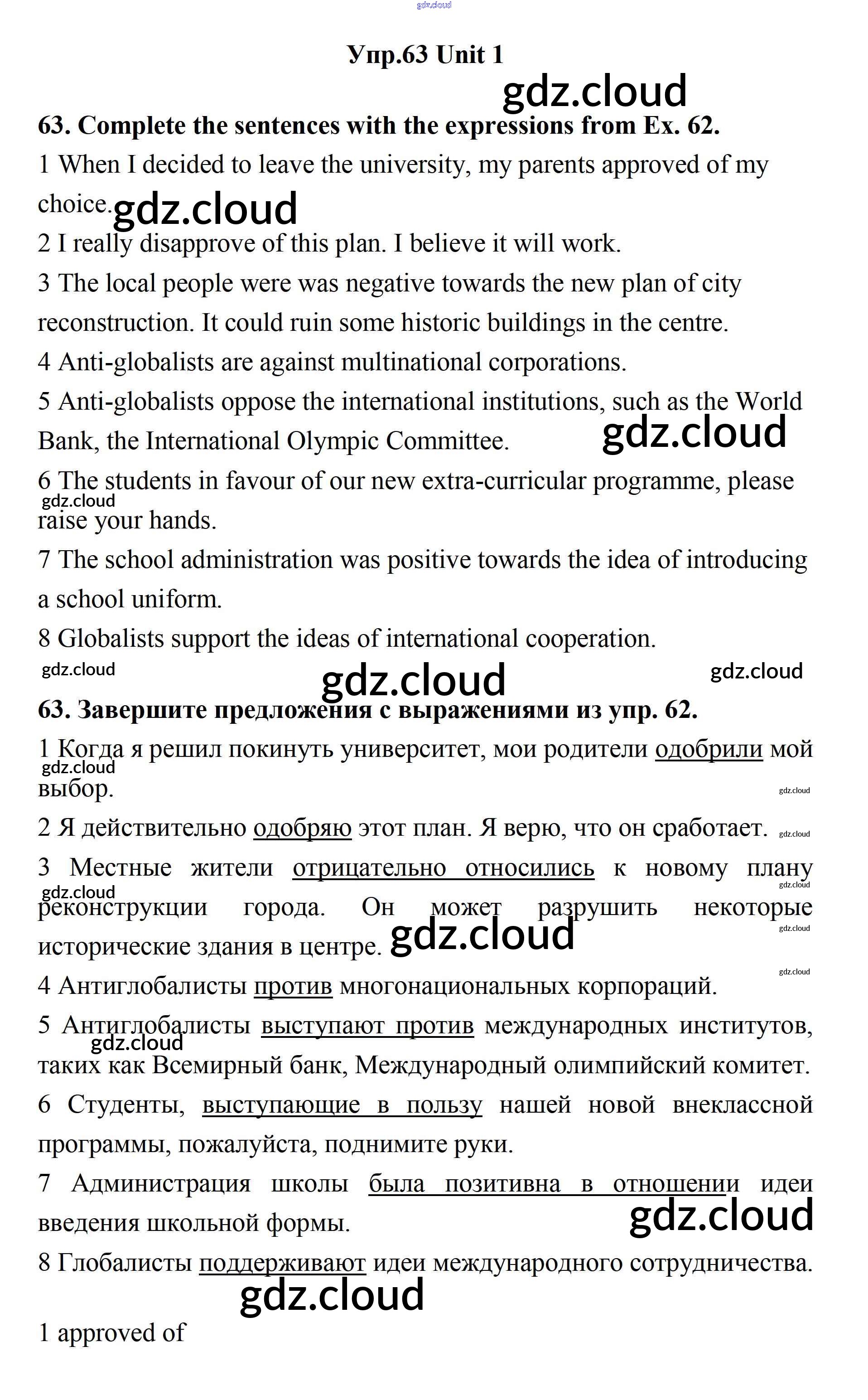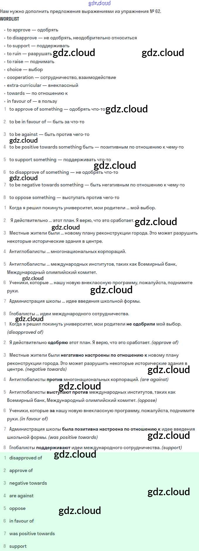 Ответ на задание 63 Учебник Английский язык за 11 (одиннадцатый) класс Биболетова, Бабушис, Снежко Enjoy English 2017