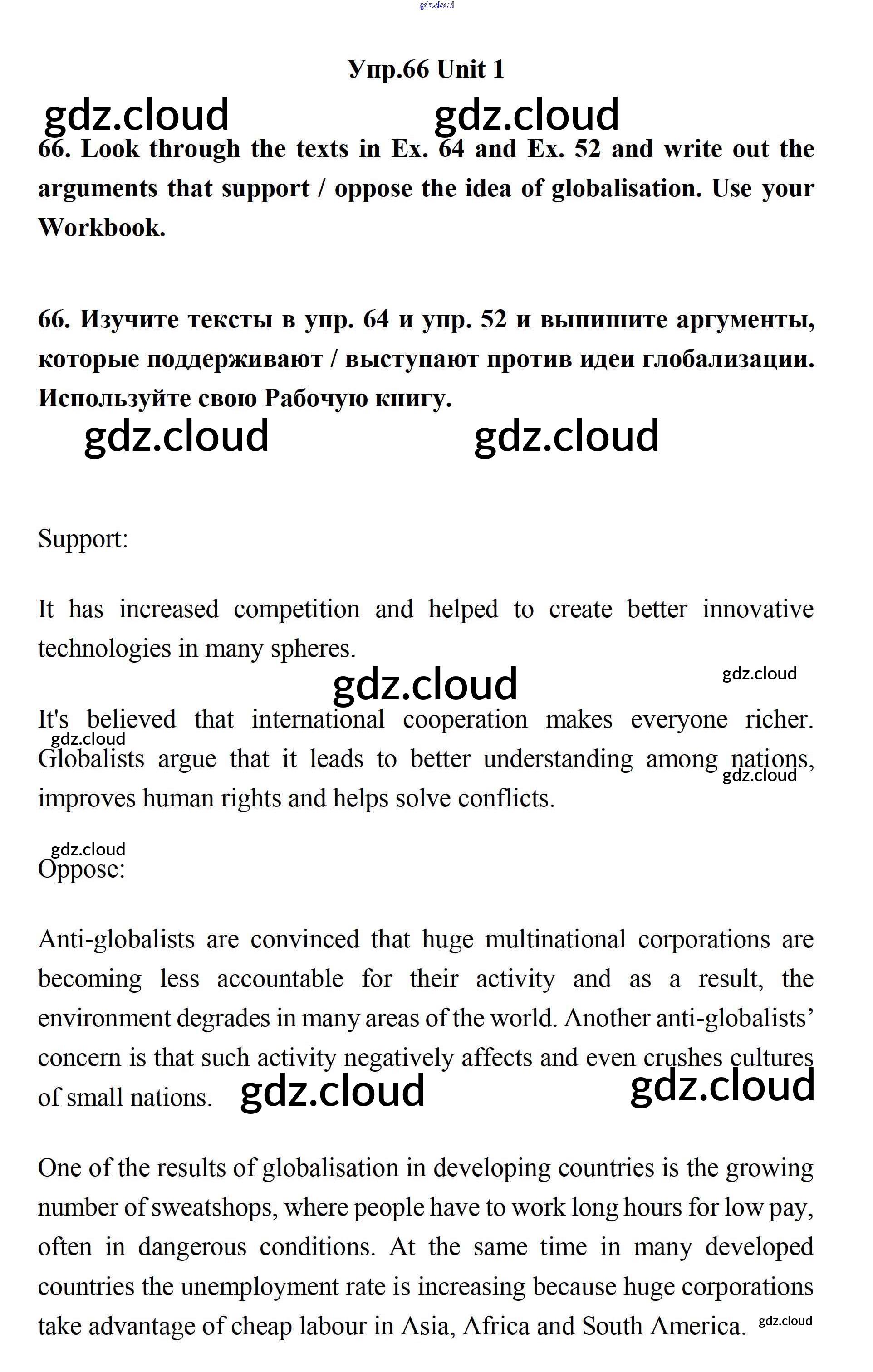 Ответ на задание 66 Учебник Английский язык за 11 (одиннадцатый) класс Биболетова, Бабушис, Снежко Enjoy English 2017
