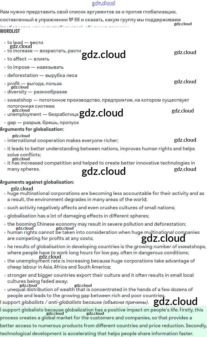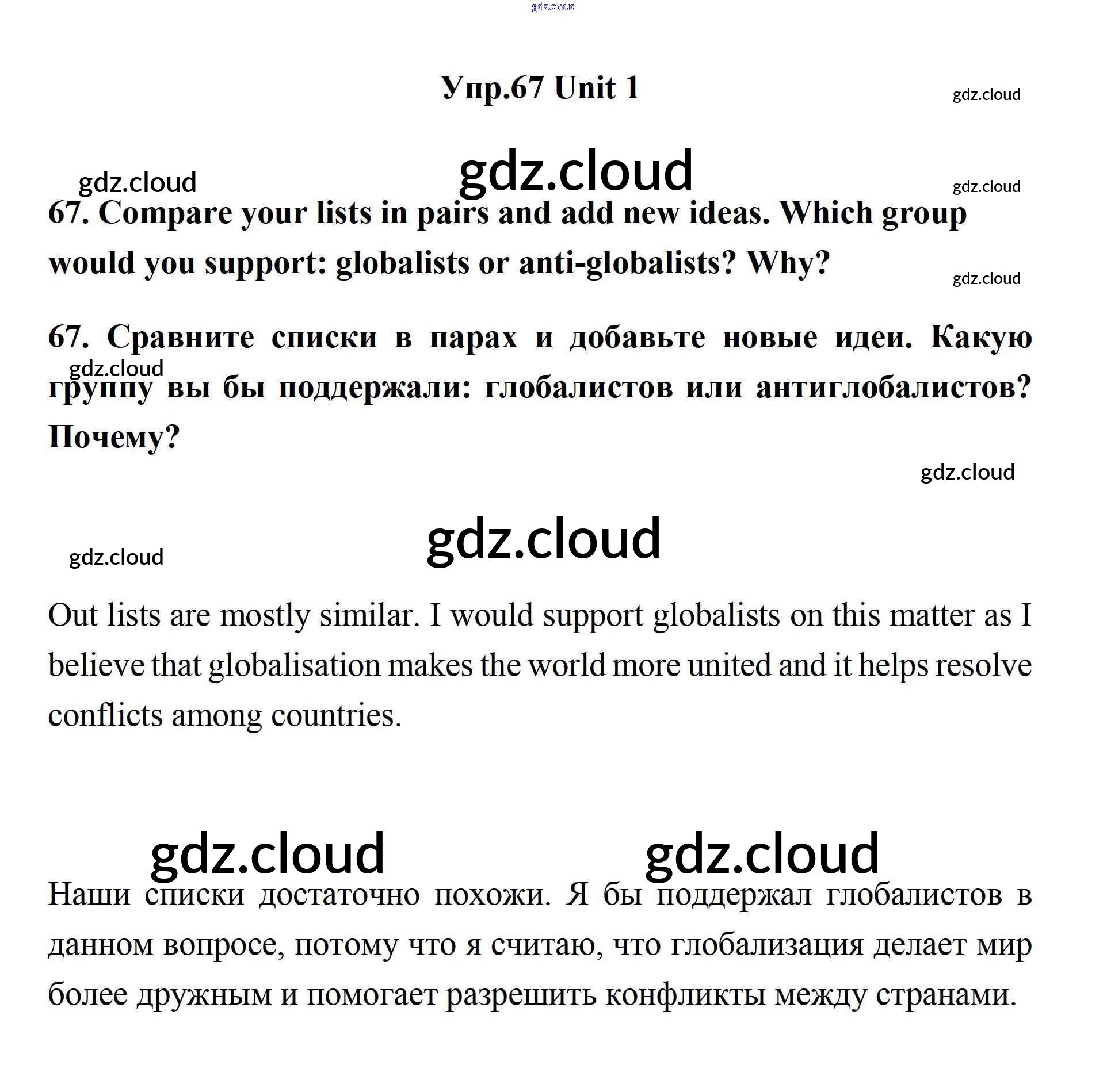 Ответ на задание 67 Учебник Английский язык за 11 (одиннадцатый) класс Биболетова, Бабушис, Снежко Enjoy English 2017