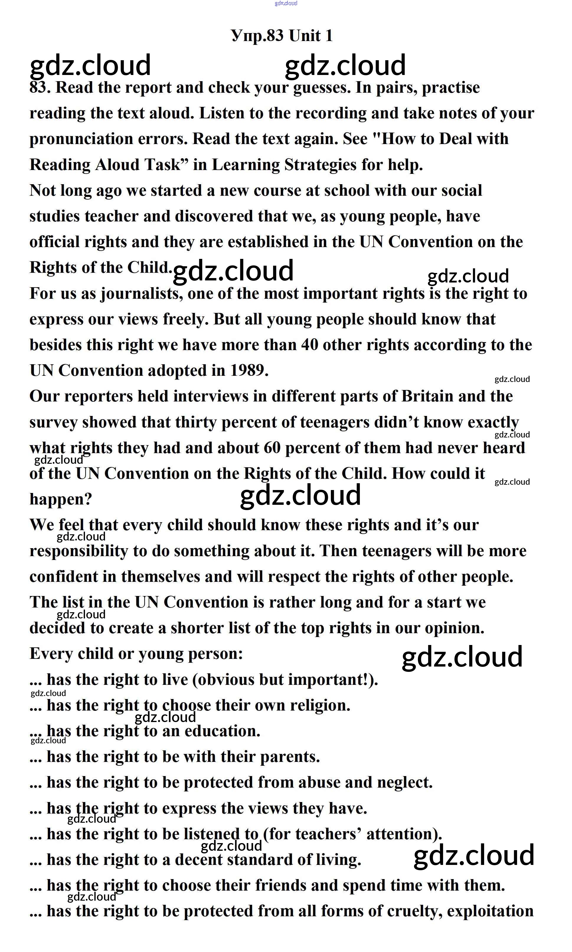 Ответ на задание 83 Учебник Английский язык за 11 (одиннадцатый) класс Биболетова, Бабушис, Снежко Enjoy English 2017