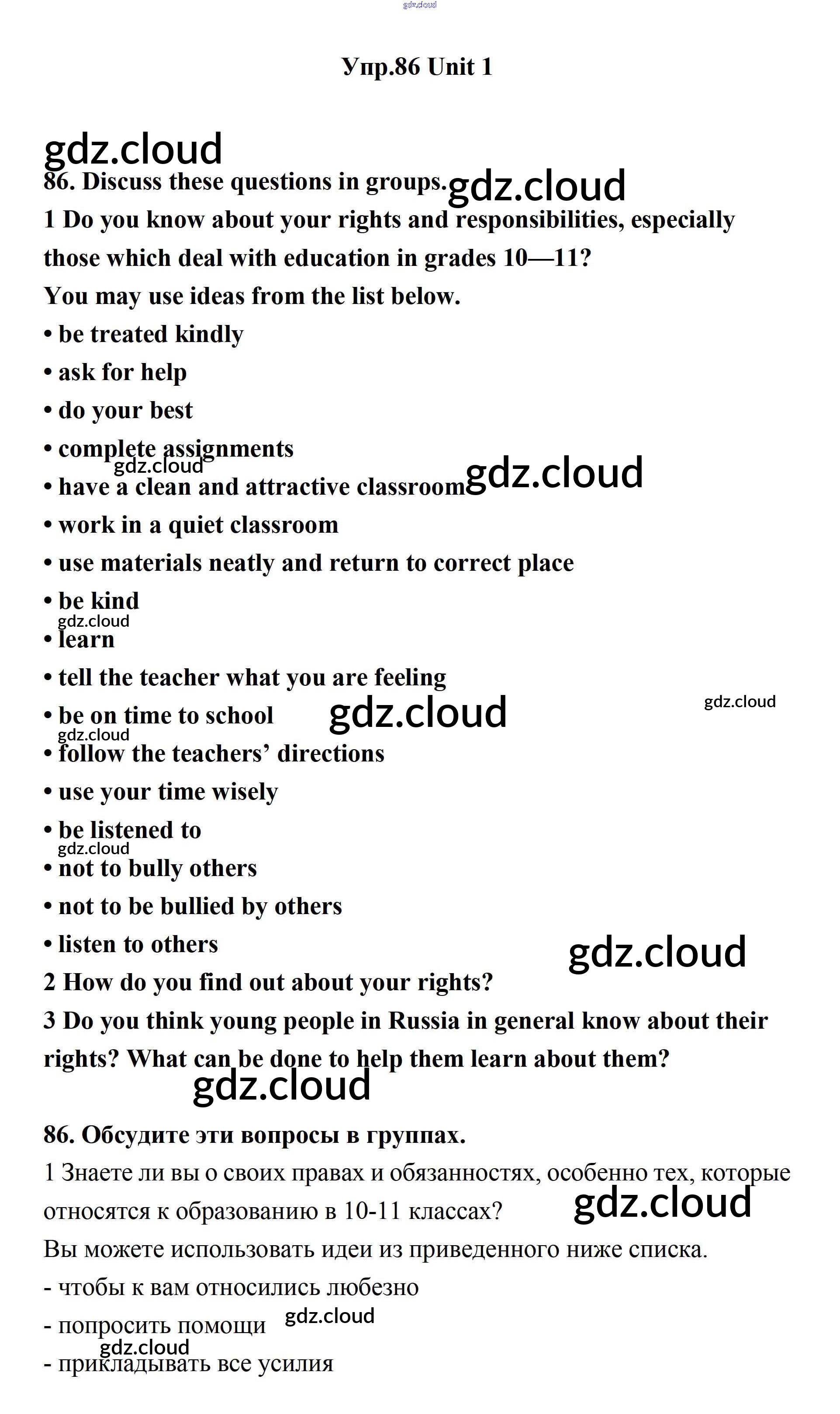 Ответ на задание 86 Учебник Английский язык за 11 (одиннадцатый) класс Биболетова, Бабушис, Снежко Enjoy English 2017